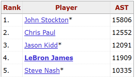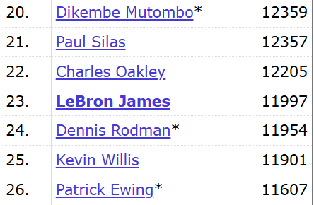 据统计,詹姆斯只要再抢3个篮板球,生涯篮板球总数就将达到12000个。而距离12