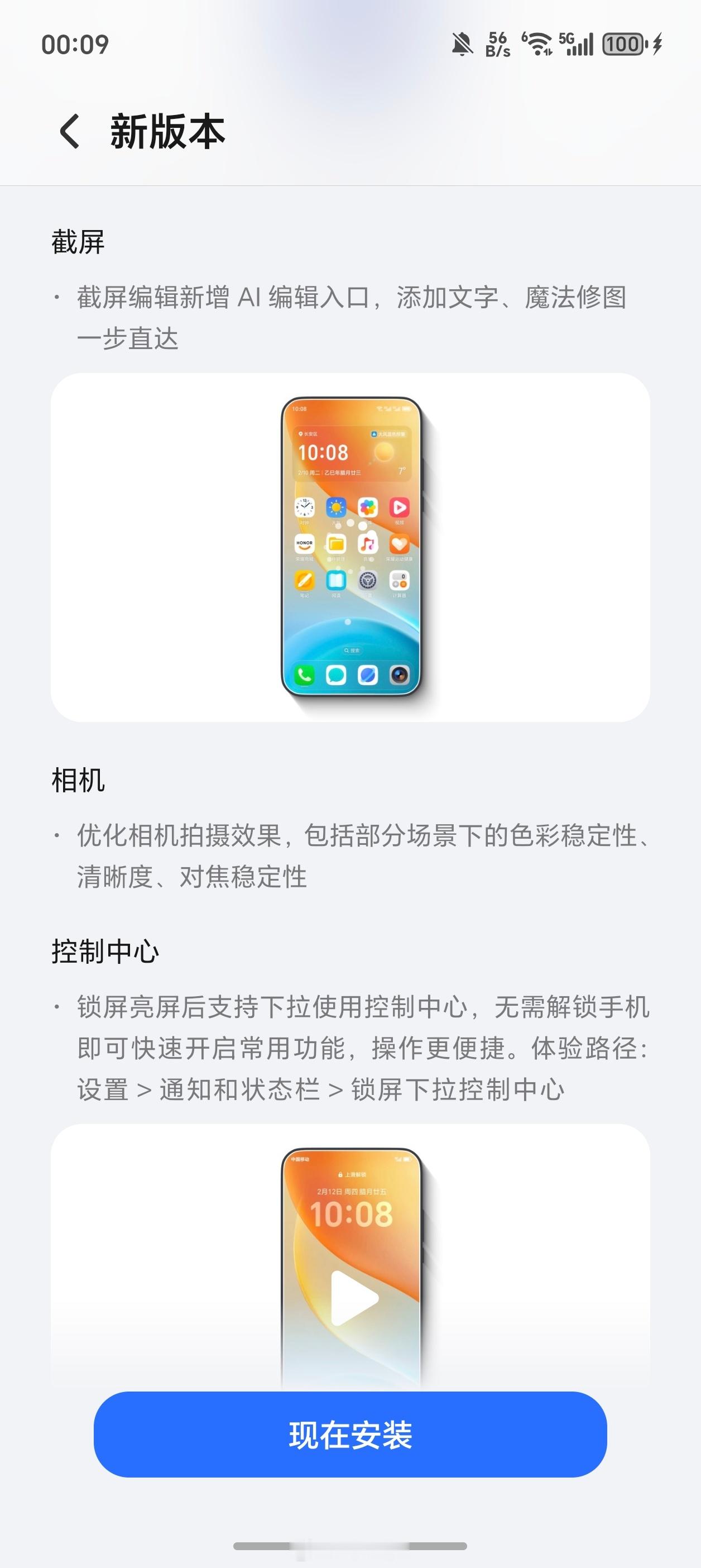 灵动胶囊:新增音频律动效果,视听更沉浸截屏:AI编辑入口直达,修图加字更高效相机:优化色彩/清晰度/对焦,成片更稳定控制中心:锁屏可下拉调用,无需解锁更便捷智慧多窗:悬浮窗支持位置记忆+横屏默认位,多任务操作更顺手