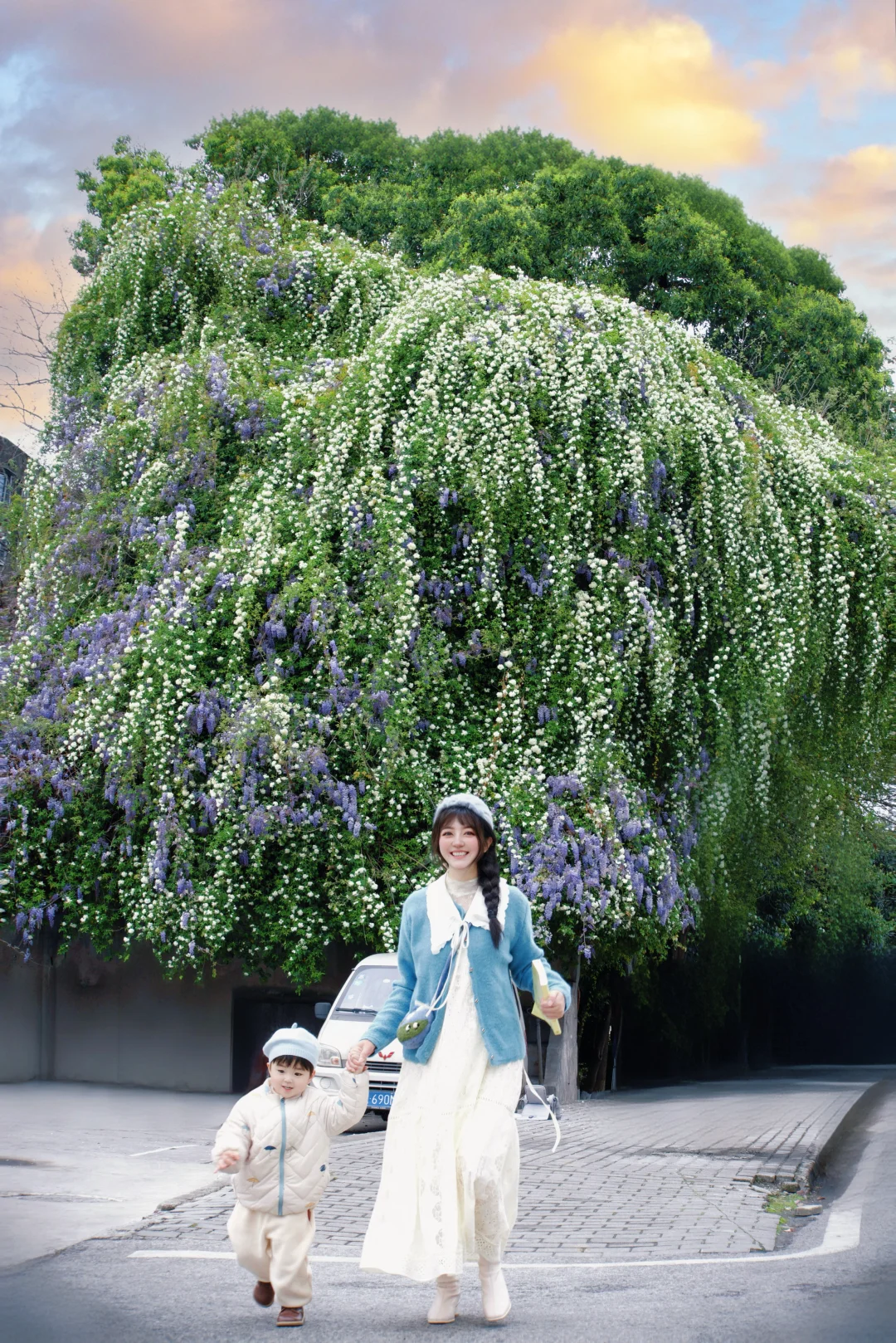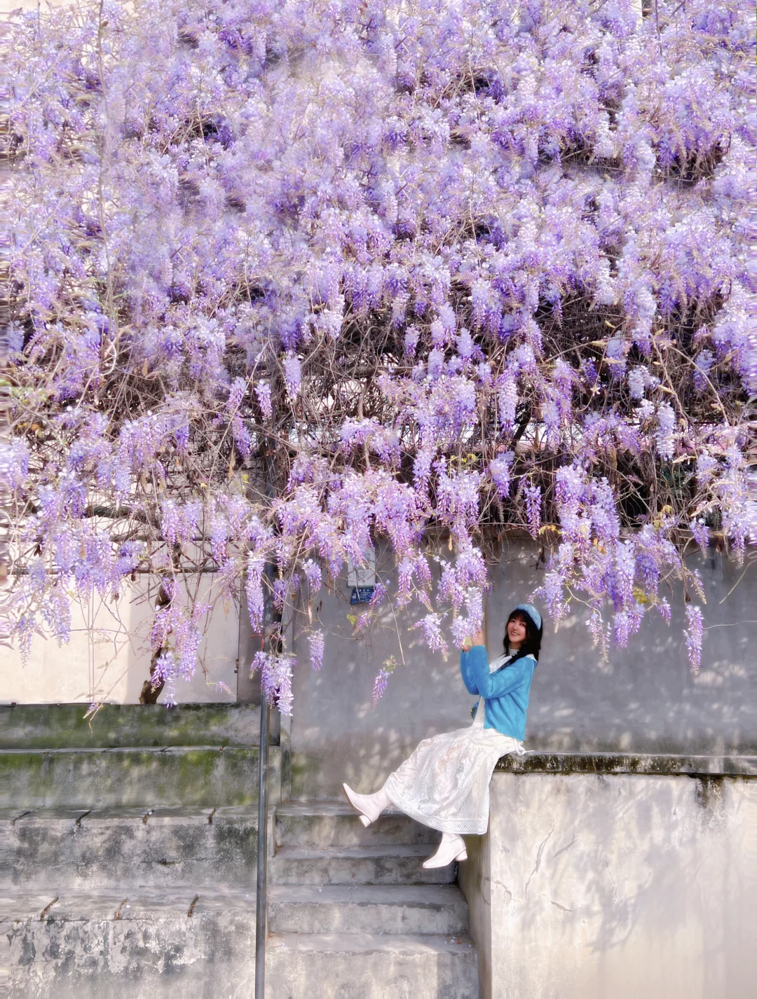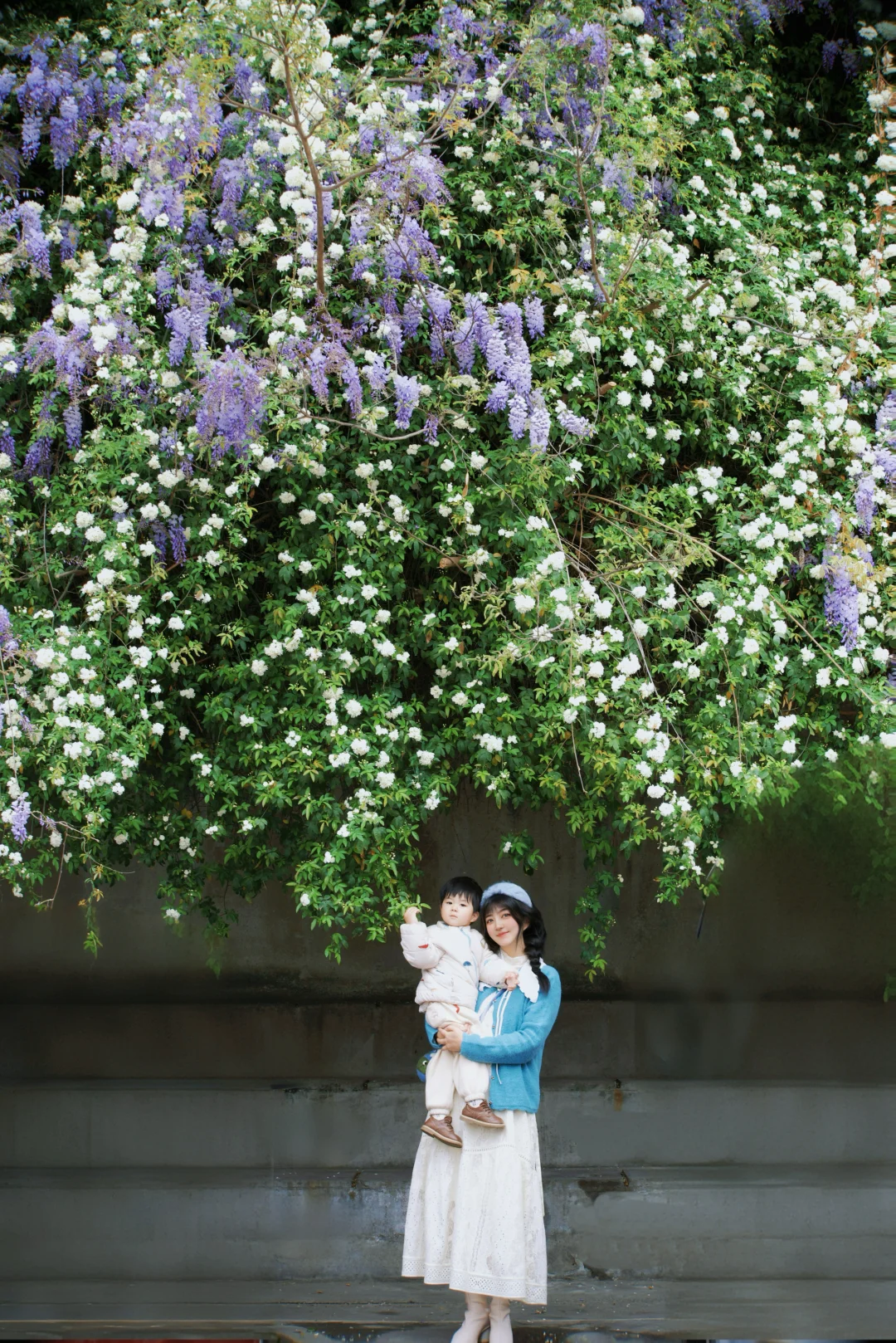 成功打卡鲜花瀑布,这片紫藤花和七里香开啦
