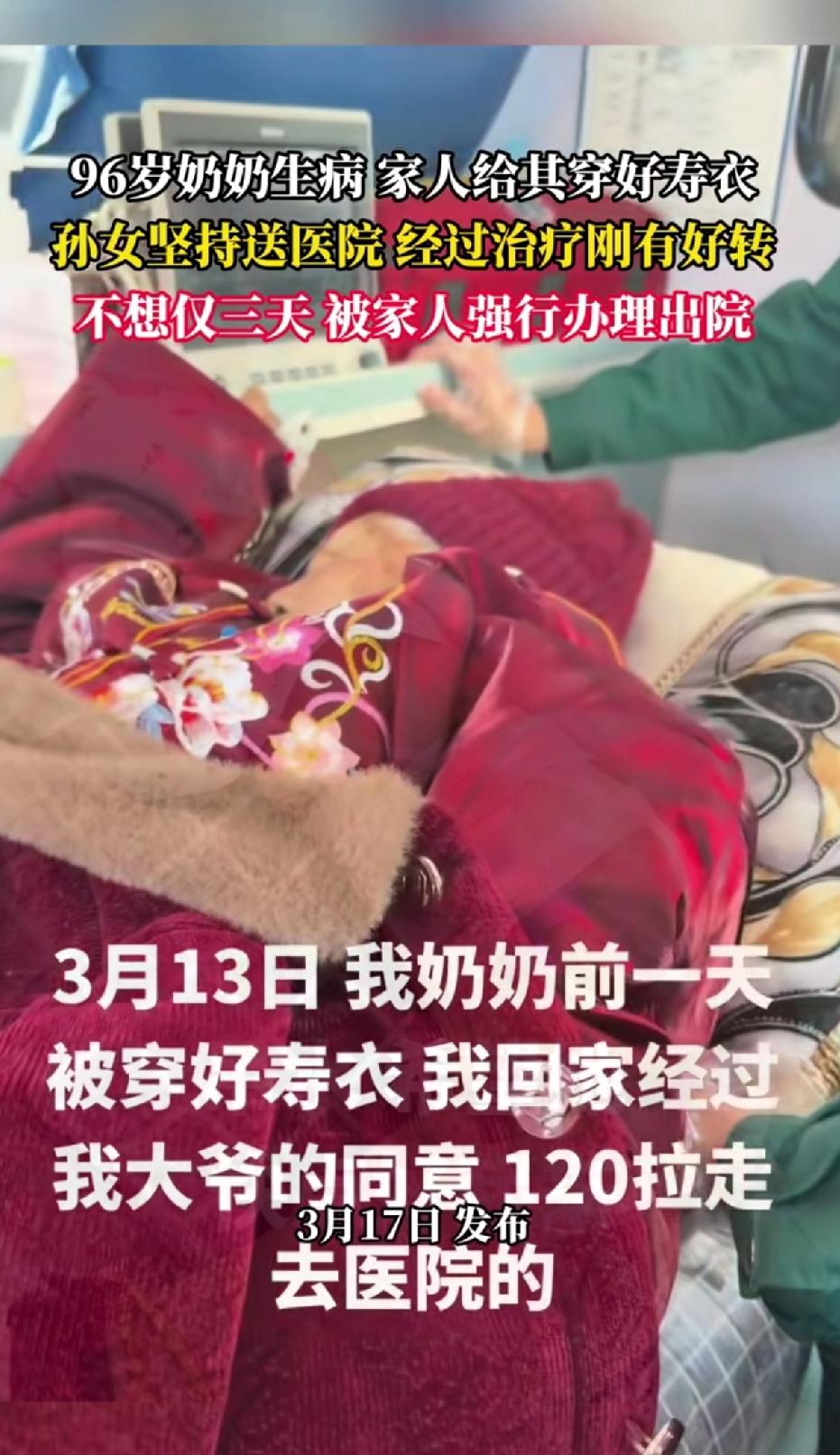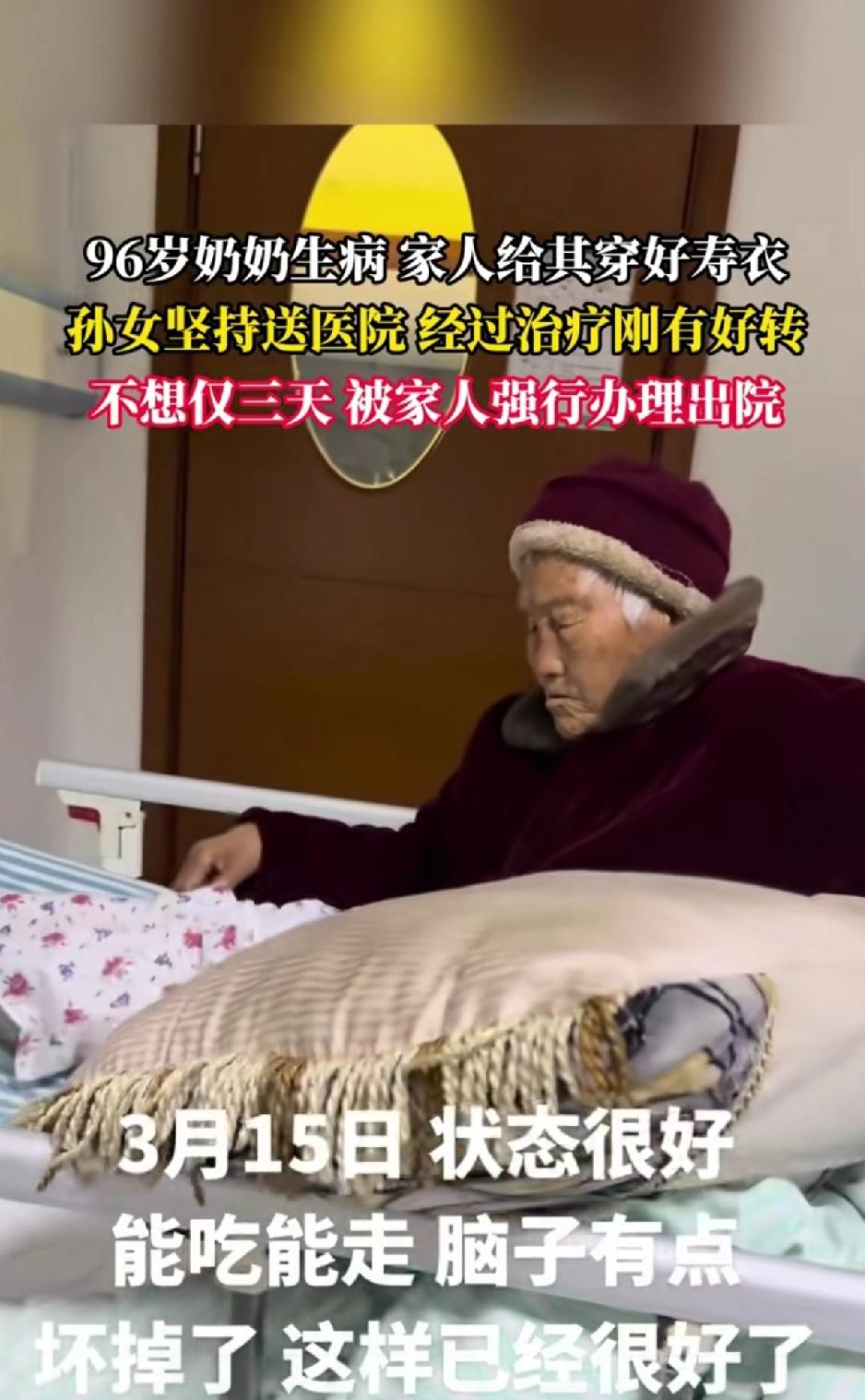 96岁奶奶生病,家人给其穿好睡衣,孙女坚持送医院,经过治疗刚有好转,不料仅三天就