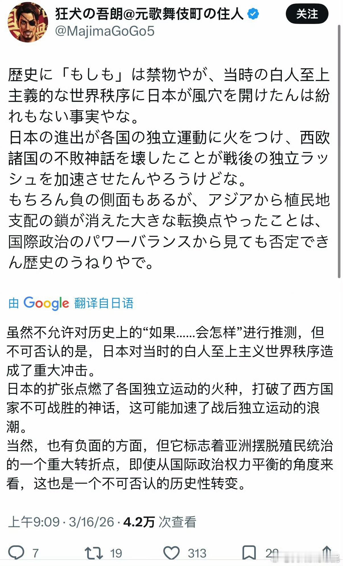 日本右翼和中国一些自以为是精英的意见领袖对于二战历史和今日日本的认知落差。结合当前以及未来可见的国际形势。中国如果让这群人掌握方向。实在太堪忧的。不但幼稚得可怕而且对自己想要学习甚至崇拜的民族一无所知,这是另一种愚昧。一种精致的,带着滤镜不自知的愚昧。图二的认知在日本可不是一小部分人,正在变成主流民意。