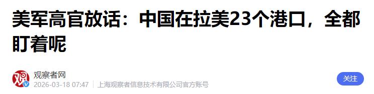 幸亏中国一直不曾大意:美军上将对中国摊牌,特朗普也太阴了! 当地时间3月17日,特朗普在会见爱尔兰总理时,再次强调:“我和中国的关系非常良好”。而且,他还反复称自己非常期待访华。然而,就在很多人认为他正在试图改善中美关系之际,美国上将却对中国摊牌了。 就在特朗普释放所谓“友好信号”的同一天,美国军方直接跳出来摊牌,丝毫没有遮掩的意思。据香港《南华早报》披露的真实消息,美军南方司令部司令、陆军上将多诺万在接受国会质询时,毫无顾忌地公开针对中国放话,把矛头直指中国在拉美地区的合法合作项目。 多诺万明确宣称,美军正在密切监控中国在拉美地区的23个港口项目,以及12个航天相关设施,这番话等同于直接把监控的矛头对准了中国的海外合法利益。 更过分的是,这位美军上将还公然编造谎言、污蔑抹黑,毫无依据地给中国项目扣上“军民两用”的帽子,声称这些平时服务于民生和贸易的项目,到了特殊时期会被军方所用,还倒打一耙称这是对美国的“长期威胁”,甚至叫嚣美国必须采取行动应对。 这种说法完全是无中生有、颠倒黑白,但凡了解中拉合作实情的人都知道,中国在拉美推进的港口、航天项目,全是纯粹的商业合作和民生工程,从来没有附加任何政治条件,更没有所谓的军事用途。 这些年中国企业参与拉美港口建设,帮当地完善了物流体系,带动了贸易发展,创造了大量就业岗位,让拉美民众实实在在享受到了发展红利;航天领域的合作更是普惠性质,助力拉美国家提升科技水平、完善气象监测、推进农业发展,是实打实的互利共赢。 美国军方无视这些客观事实,刻意抹黑中国正常的国际合作,本质上就是看不得中国和其他国家友好往来,想维护自己在拉美地区的排他性霸权,容不得别的国家和拉美开展平等合作。 结合特朗普的示好和美军上将的摊牌,就能彻底看清美国的险恶套路:让政客出面说软话、扮温和,迷惑国际舆论,让外界误以为美国想缓和关系;同时让军方跳出来放狠话、搞施压,继续推进围堵打压中国的计划,两边一唱一和,就是想打心理战,试图让中国放松警惕,进而在博弈中占据上风。 这种手段美国不是第一次用,以往经常靠着“口头缓和+实际打压”的组合拳,试探别国的底线,妄图不费吹灰之力谋取利益。 幸亏中国一直保持清醒,从来没有被这类表面假象蒙蔽,更没有因为几句好听的话就放松戒备。多年来,美国在对华关系上反复无常,嘴上说着合作共赢,背地里却频频搞军事挑衅、抹黑造谣、制裁打压,种种行径早已暴露了其霸权本质。 不管是政坛人物的口头示好,还是军方的强硬叫嚣,本质上都是为美国的霸权战略服务,核心目标从来没有变过,就是想遏制中国的正常发展,阻挠中国和其他国家的友好合作。 面对美国这种两面三刀的做派,中国的态度始终明确且坚定:合作我们欢迎,但打压和抹黑绝不接受;友好的姿态我们回应,但别有用心的圈套我们绝不会钻。 无论是海上遭遇外舰挑衅时的冷静应对,还是面对海外合作被抹黑时的坚守底线,都体现出中国始终做好了万全准备,既不主动惹事,也绝不怕事。 中国坚持在平等互利的基础上和各国开展合作,维护自身合法权益和海外利益,同时也时刻紧盯外部势力的挑衅动作,不会给任何国家可乘之机。 这次美国政坛的双簧戏,再次给所有人提了醒:国际博弈从来都不是靠口头表态,而是看实际行动。美国越是嘴上说友好,背地里的动作就越值得警惕,任何时候都不能被虚假的善意迷惑。 中国之所以能一次次化解危机、守住底线,靠的就是时刻不松懈的警惕心,靠的是脚踏实地提升自身实力。 不管美国接下来玩什么套路、耍什么手段,中国都会保持定力、沉着应对,朋友来了有诚意,若是心怀不轨想来挑衅,我们也有足够的底气和能力坚决回击,守护好国家的每一份利益。