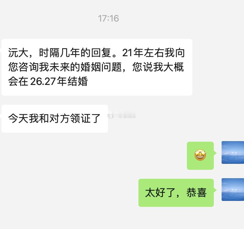 有网友反馈,当年我说是26-27结婚,今日领证了。看了一下,四年前预测的。命运的
