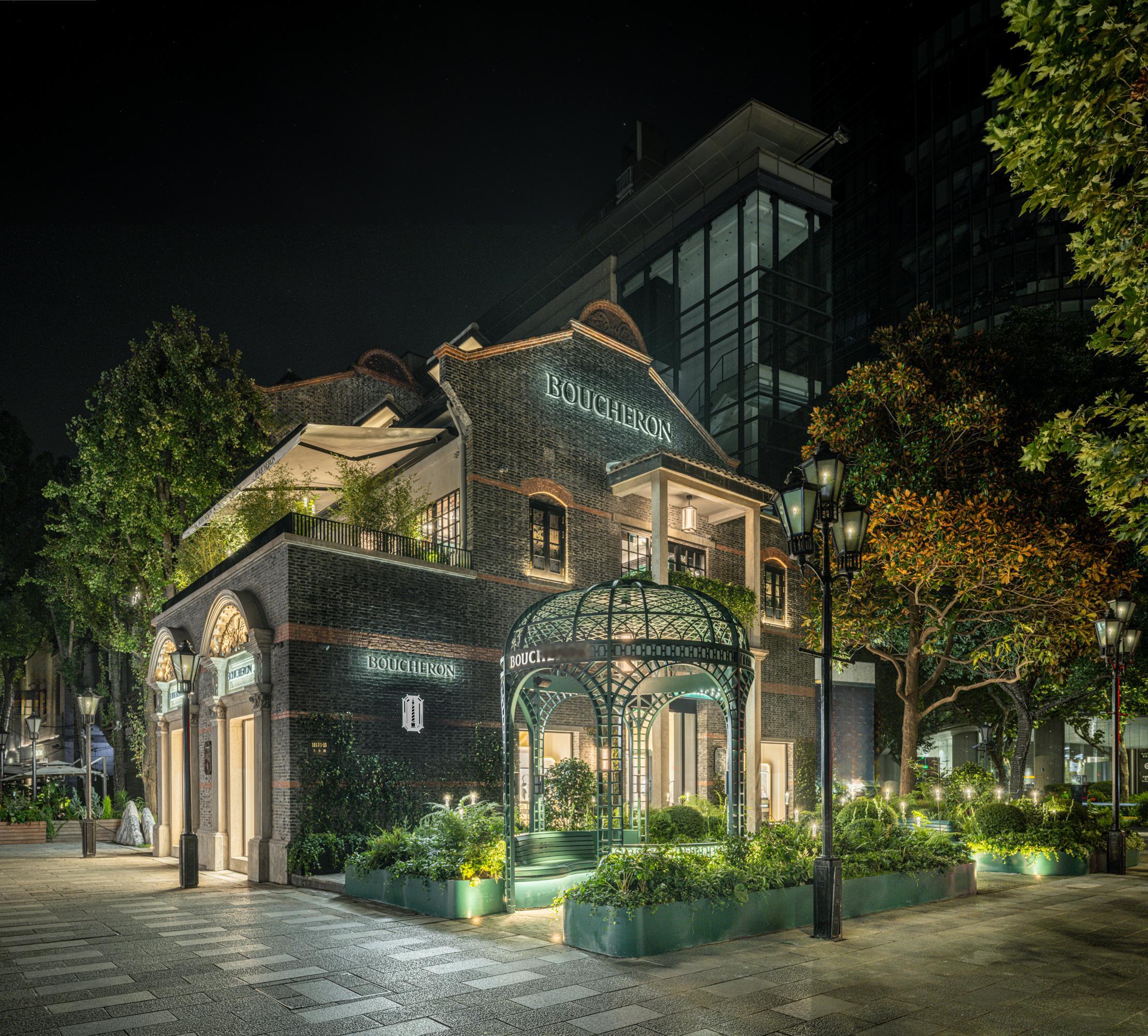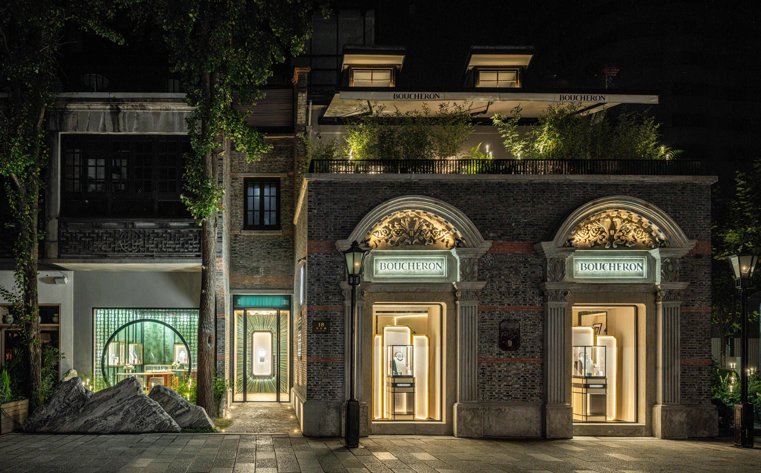 宝诗龙 Boucheron 在充满历史底蕴的上海新天地正式揭幕中国首家旗舰店 !落址于百年石库门建筑 ,品牌完整保留了建筑原有结构与核心肌理 ,砖墙 、拱门的原生风貌 ,以及贵宾沙龙内的裸露横梁 、原始砖墙都被悉心留存 ,尽显石库门建筑的本真魅力 。在此基础上 ,宝诗龙将法式装饰艺术的对称美学 、金属装饰 、祖母绿形切割元素巧妙融入 ,与中式文化元素相融共生 :入口处打造法式冬景花园与中式古典园林双庭院景观 ,由标志性月洞门衔接起东方诗意的空间过渡 ;内部空间则依风水理念打造 ,红与绿的色彩碰撞更成为点睛之笔 ,既呼应宝诗龙标志性祖母绿 ,又致敬东方红色的文化意蕴 ,大理石马赛克 、秸秆镶嵌展柜中都能窥见这份融合 ,让这座百年建筑在传承中焕新 ,成为承载双城美学的独特空间 !