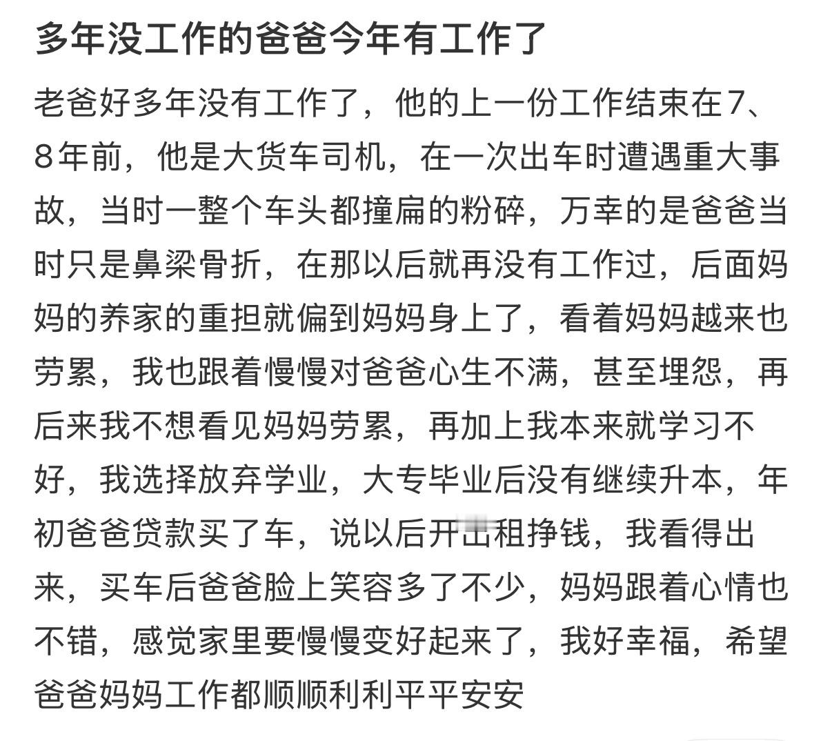 多年没工作的爸爸今年有工作了青醒高光time