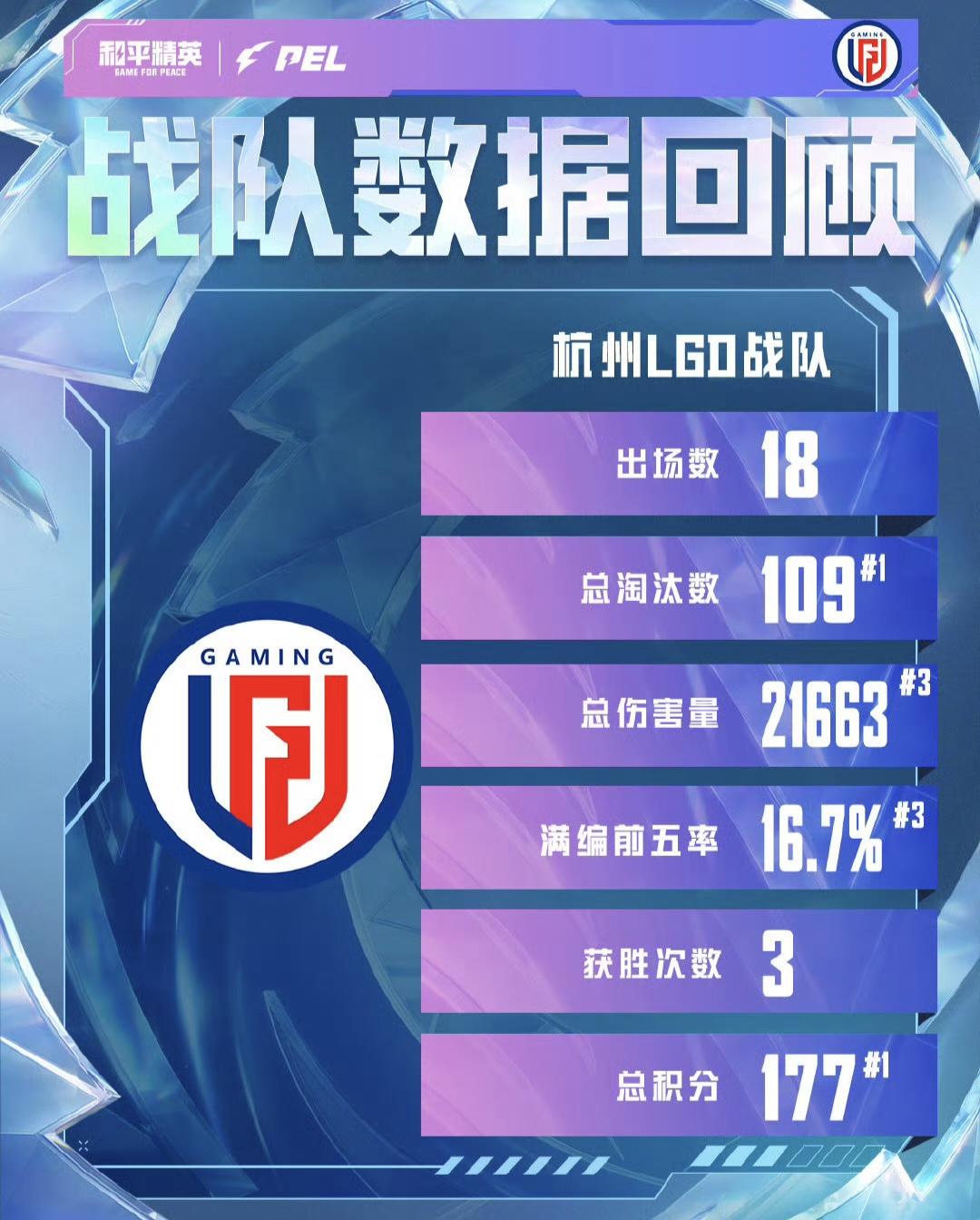 以数据维度了解战队及选手发挥,本期小P带来了2026PEL春季赛第四周周冠军杭州LGD周决赛的数据表现;