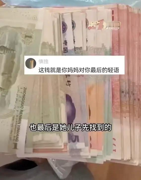 孩子:这是妈妈留给你最后的爱。 当你在床下找到这包用塑料袋装着的钱的时候,孩子,妈妈可能已不在人世了。自从妈妈得病并日复日重,就知道这个病很严重,当在医院住院的那天,从医生和你交流的眼神里,我就知道自己患上了乳腺癌,从同院病友那里也了解到,这个病也许能治,但非常花钱,更担心的是,目前治疗好转了,说不定日后哪天又会复发,从而转为不治之症,落的个人财两空。 从那时起,妈妈就不打算继续化疗了,把你和姐姐给的看病的钱,偷偷的存了下来。 孩子:不要怨妈妈小气,不是舍不得钱财。而是觉得把这钱花到我那不争气的身上不值。 我们家还不是很富裕,你也已成家立业,拖家带口的也不容易。我这点结余下来不多的钱,对你也许能有用。 孩子:妈妈不在了,你无需悲伤,善待妻子,爱抚儿女,看到你家四口其乐融融,妈妈在天堂也会高兴的。
