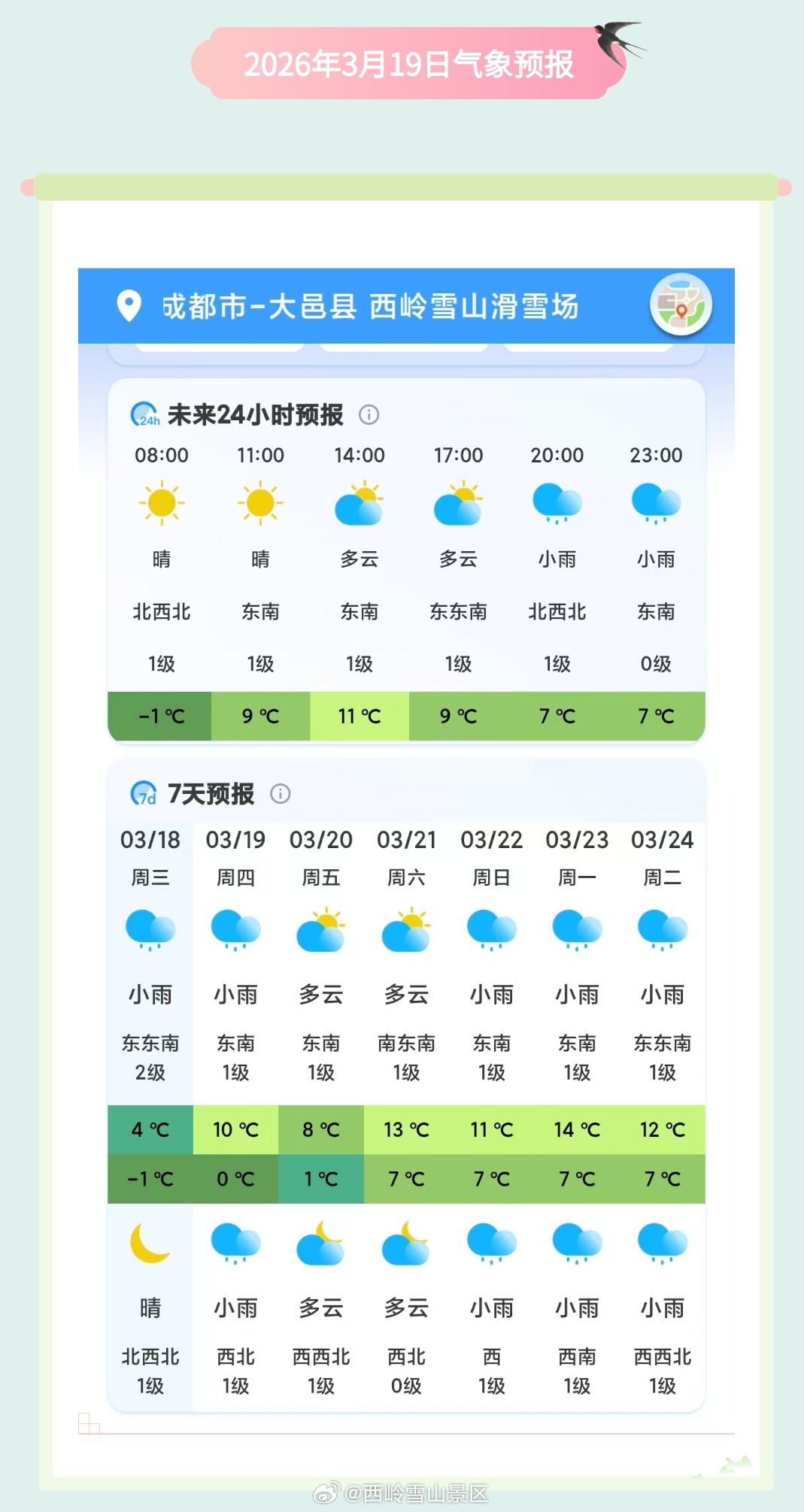 西岭雪山3月19日(周四)气象预报#西岭雪山 #