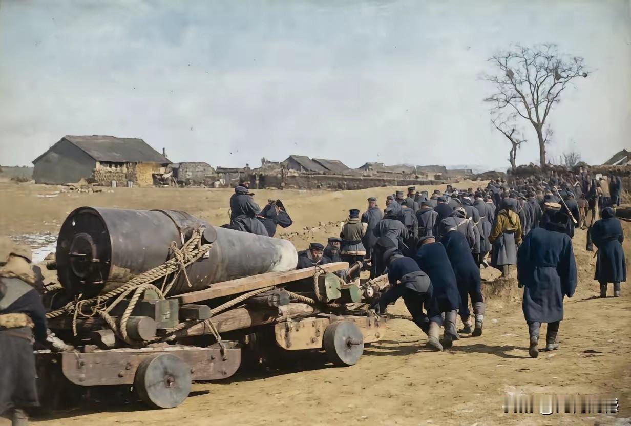 这门大炮可够笨重的了,拉大炮的车,也是相当的原始,相当的笨重,车的轱辘也不是轮胎,看那笨重的样子,像是木头轱辘。这门大炮是日本鬼子的,当时正是日俄战争时期,日本鬼子从日本本土运来了这门大炮,目的就是想对付当时占领旅顺的俄军。看到这门100多年前的大炮,与现在的导弹相比太落后了,但这在当时,也是非常厉害的。这张老照片,也让今天的人们看到了日本鬼子在我们这里犯下的罪行!