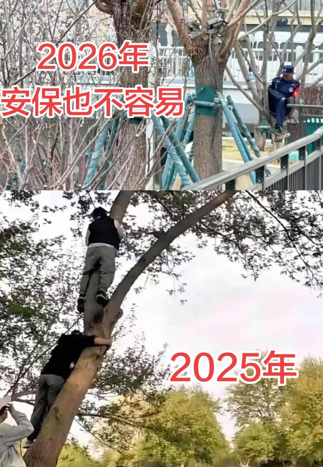 成都那边的树上啊,除了大熊猫,现在多了一帮保安。 国乒在成都封闭训练嘛,今年的安保直接升级到树上去了。 呃……不是都喜欢那个爬树的梗吗? 哈哈哈,不好意思啊,保安已经在树上等你啦。 但我留意到一个细节—— 保安大哥给自己带了个坐垫儿。 坐久了也硌屁股啊。 成都这几天这么冷,他还得在外面吹冷风 哎。 有人以为这是熊猫基地的保安呢。 又是树杈又是四川的,没想到是来看守国乒这群“国宝”的。 呃,成都保安招人,是不是得先考个爬树科目啊? 哈哈。 其实照片都是在河对岸拍的,根本就不用爬树。 那些爬栏杆的,站在栏杆那就能看见啊,非要爬那么高干嘛。 去年海南集训不就有掉河里的吗? 唔。 保安大哥上树守国宝,这份工作算是有了个“新高度”啊。 球迷的热情把保安都逼上树了—— 你说这到底是爱,还是麻烦啊?