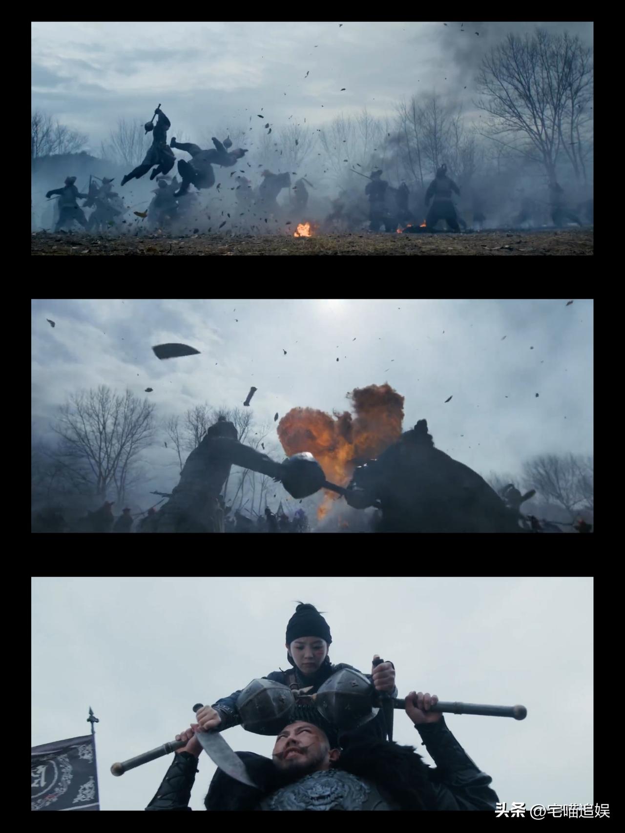 替夫上战场,本来以保命要紧。结果,长玉看到将士们浴血奋战,遂带领杀猪小队冲向敌军。 长玉力敌人高马大的石越,利用自己灵活的优势,上打头,下扫腿,把刀都磕成两半了。 最终,以石越自己的铁锤卸了他一只手,结果了这个比自己高一头半的壮汉。 谁说女子不如男?长玉太帅了! 她拼尽全力一搏,竟然把一个大将给送了西天。好厉害的大胤“花木兰”! 当石越倒下时,长玉也因为力竭晕倒…… 这时武安侯赶来,从地上抄起爱人。风吹过,把长玉的发带吹落,长发飘飘间,又一个人生镜头出现了! 马鞍上回头的长玉,青丝如瀑,好美好美啊! 谁还没有追《逐玉》? 《逐玉》为何能在全球多国同步上线