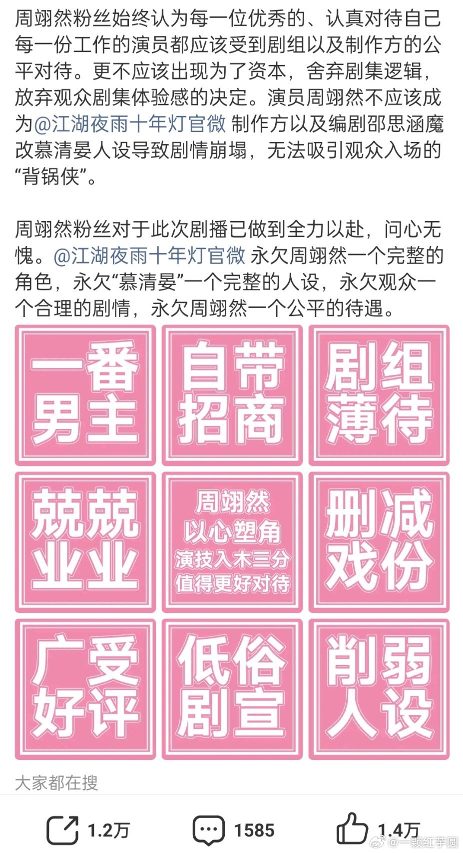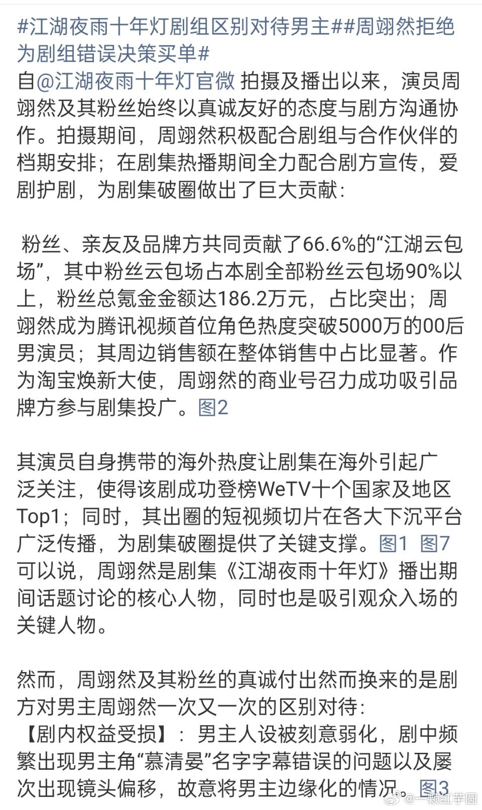 周翊然 粉丝向《江湖夜雨十年灯》剧组维权!已经万转了!