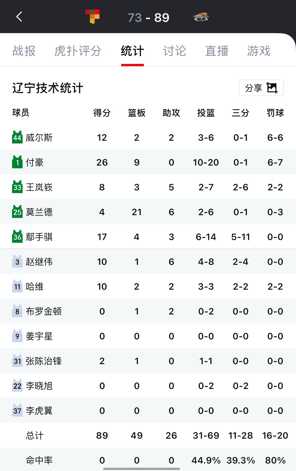 要知道辽宁队在整个第一个阶段场均三分命中率是31.1%辽宁男篮