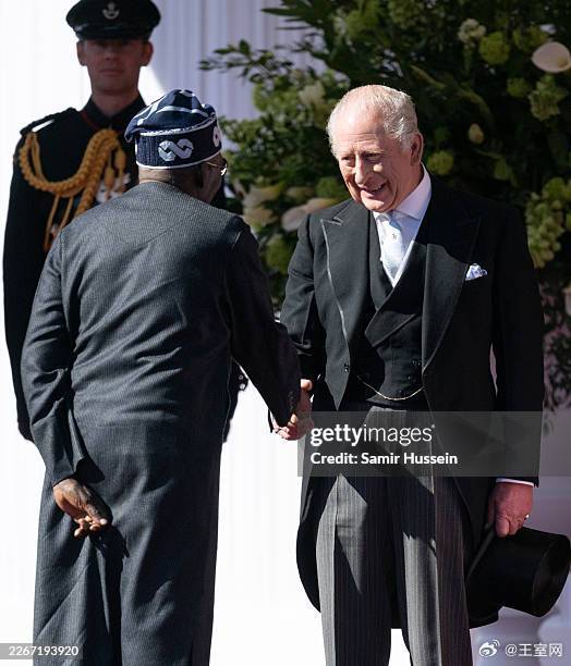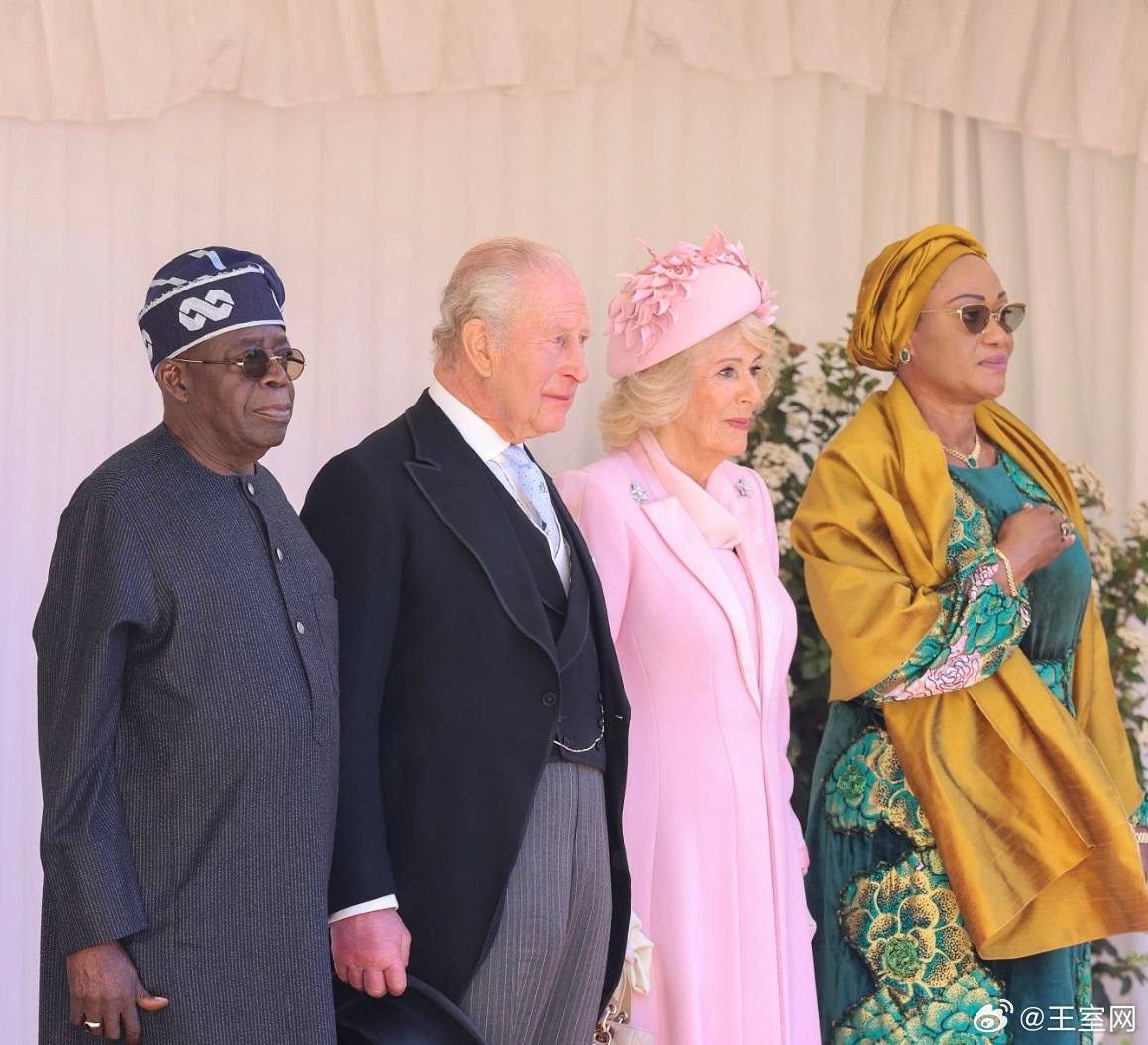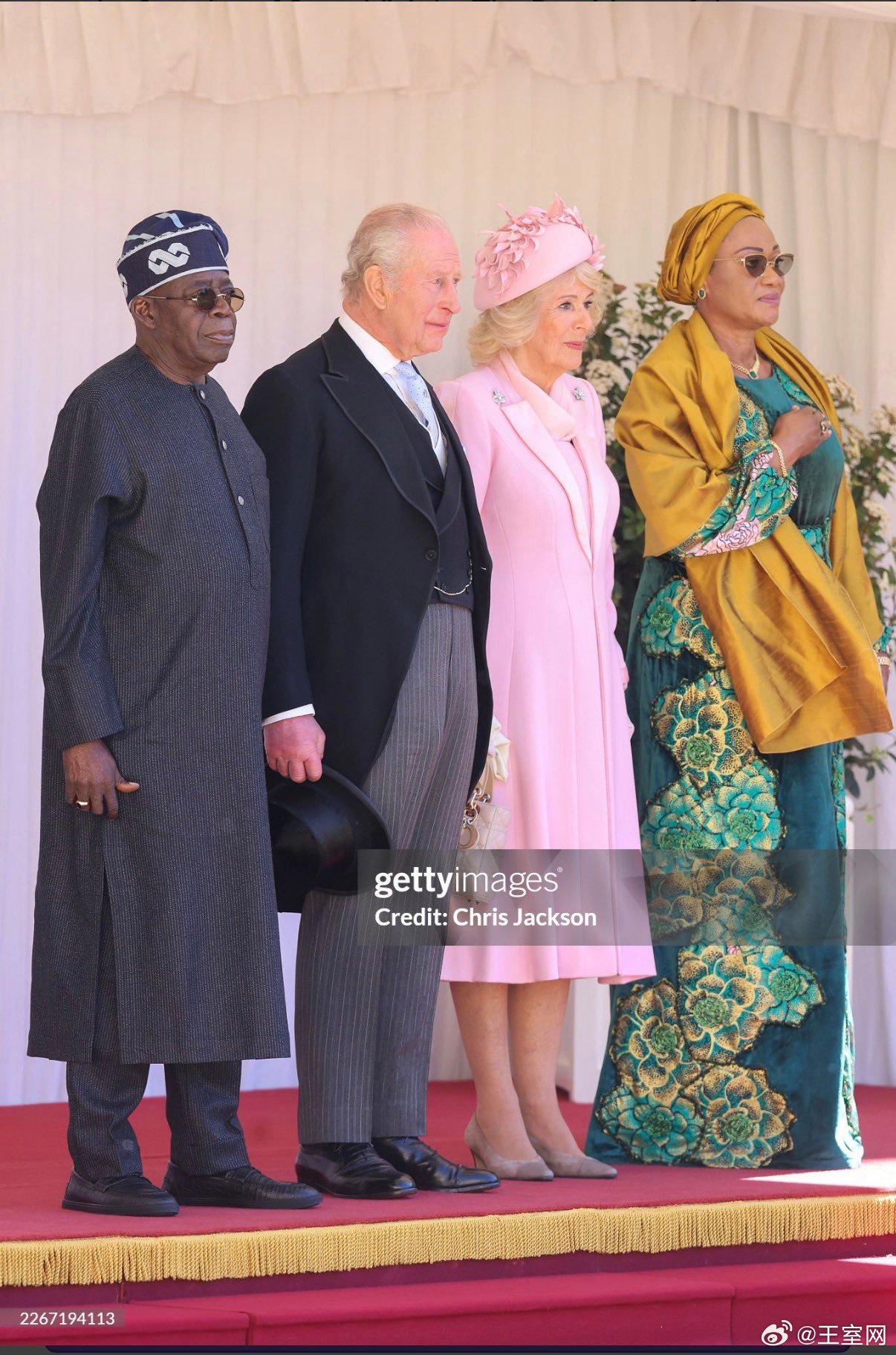 英国王室🇬🇧🇳🇬3月17日,查尔斯国王和卡米拉王后为尼日利亚总统博拉·蒂努布阁下和第一夫人奥卢雷米举行欢迎仪式和传统阅兵仪式。随后乘坐皇家马车前往温莎城堡。世界各国王室王室国事访问凯特王妃