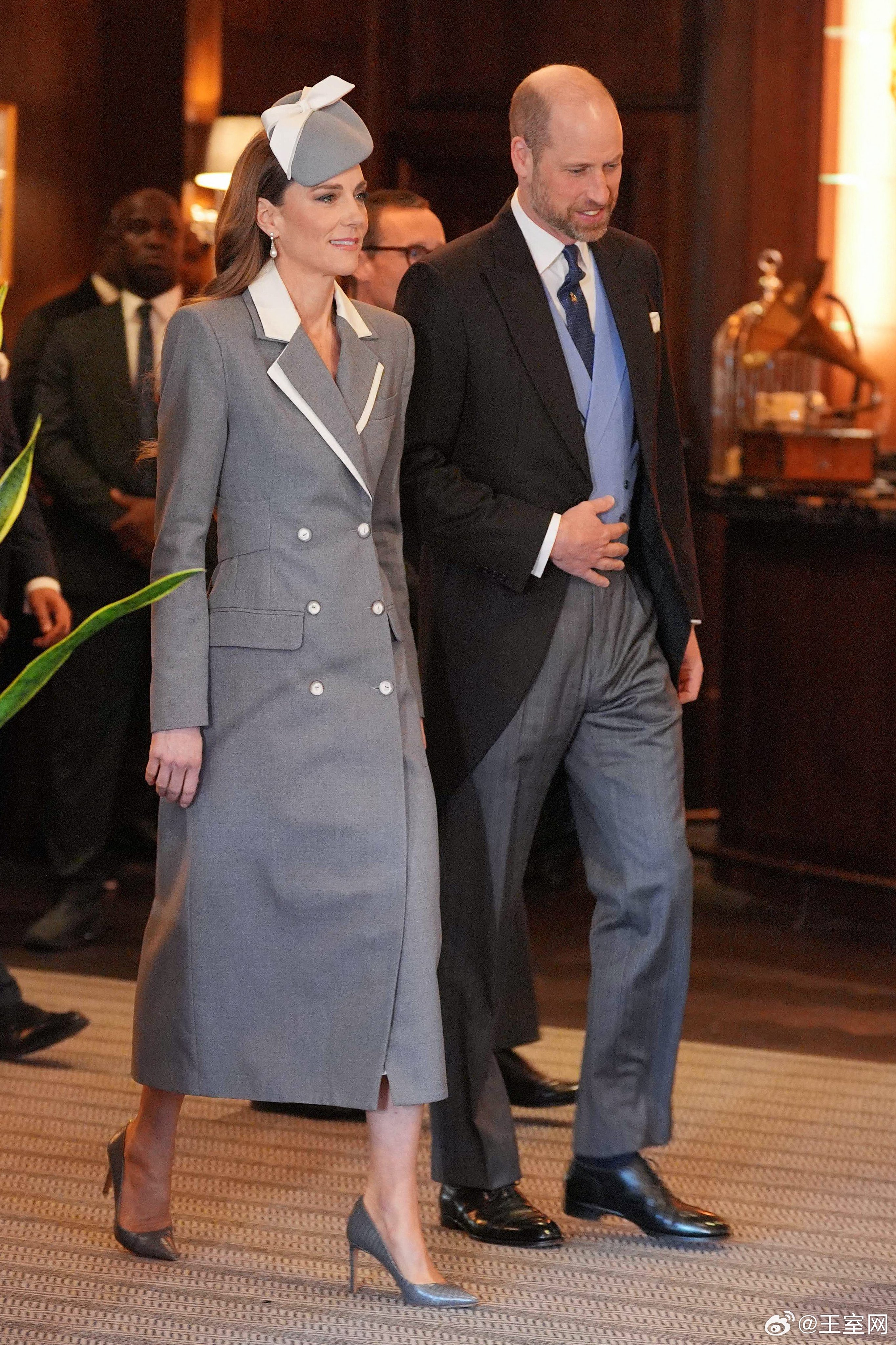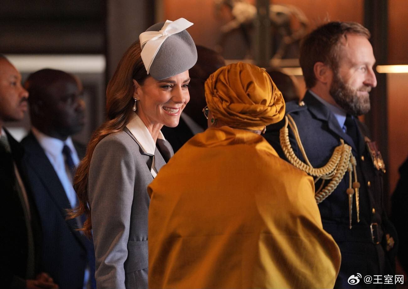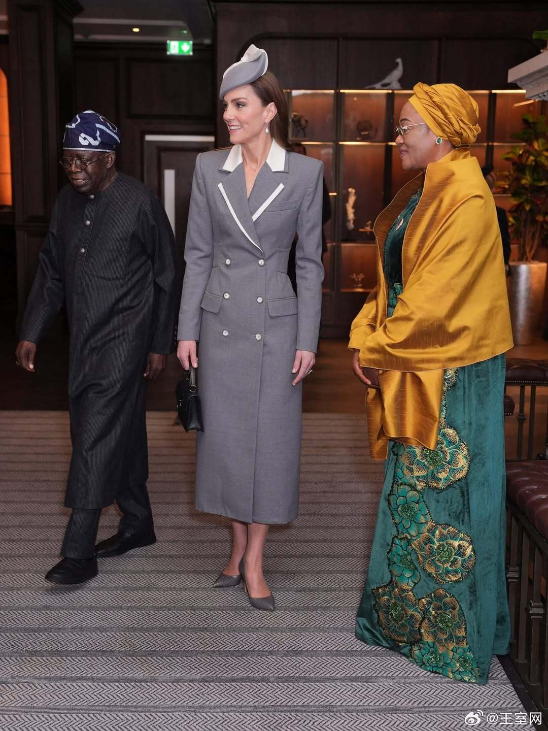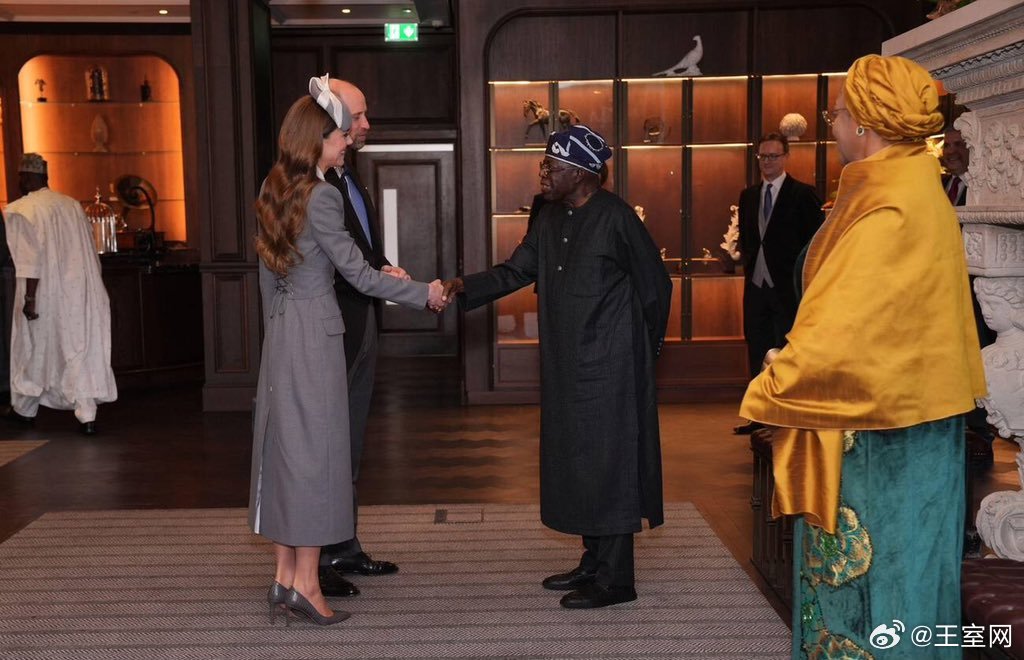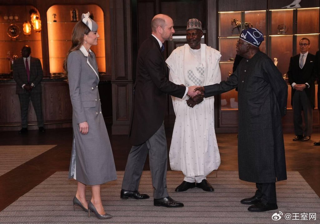 英国王室🇬🇧🇳🇬3月18日,威尔士亲王夫妇代表国王夫妇迎接在费尔蒙温莎公园酒店下榻的尼日利亚总统夫妇。世界各国王室凯特王妃 王妃的灰色外套来自尼日利亚裔设计师Tolu Coker。