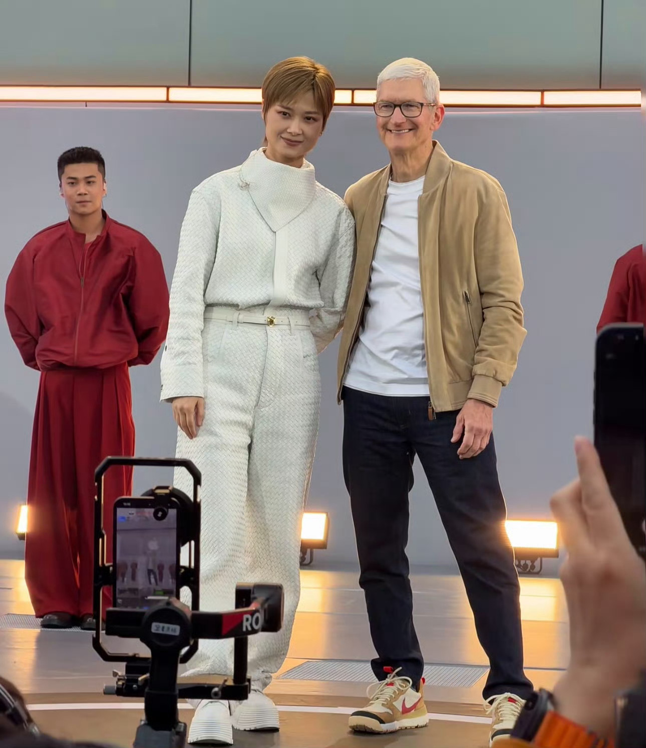 库克指了指李宇春欢呼鼓掌李宇春参加苹果50周年庆 当李宇春唱响经典曲目,库克也跟着节拍点头。结束后,库克快步上前鼓掌,还示意观众欢呼,盛赞她是改变世界的人👍