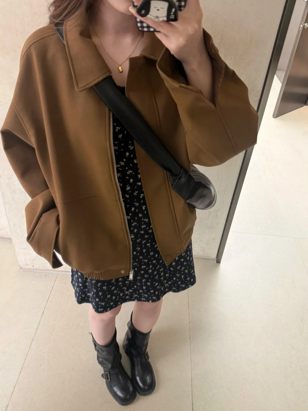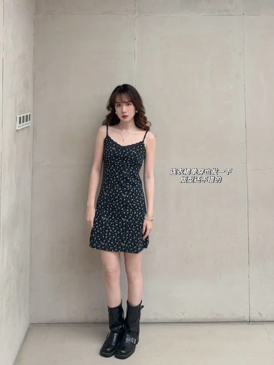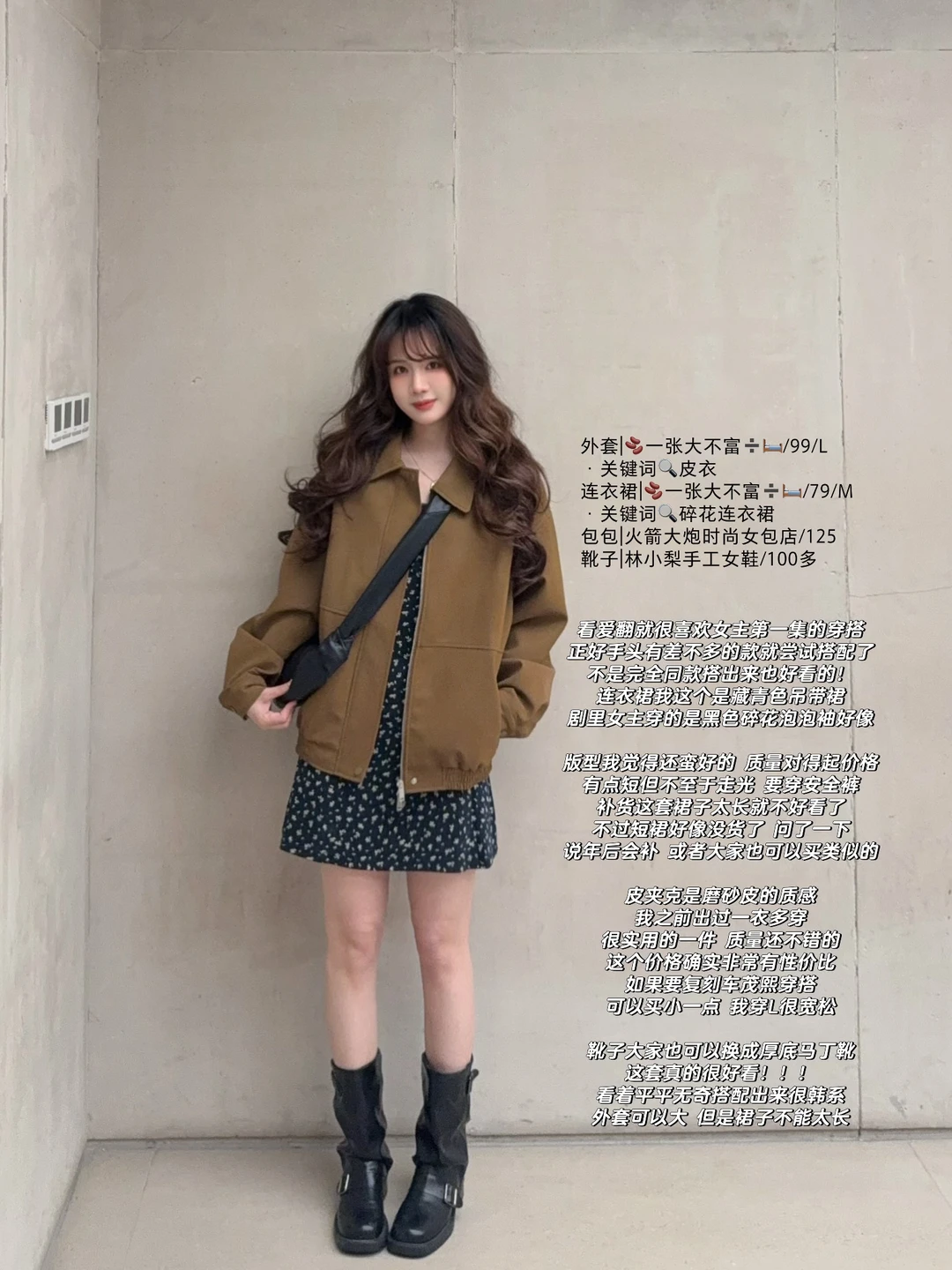 168/104 纯分享理性种草 仅仅是复刻不是完全还原哈哈 差不多意思一下 参考搭配思路 皮外套➕碎花内搭➕靴子 正好都是有的衣服 就随意搭配了一下 个人觉得还是很有氛围感的一套 适合20多度的天气穿~(早春的太阳天!) 实用性不是非常高 但是真的很好看 春天确实也是乱穿衣啦哈哈 这件皮衣的搭配也出过穿搭思路了 有更日常一点的裤子穿搭 连衣裙搭配黑色皮衣夹克也好看的~ 或者是黑色波点碎花裙都可以的