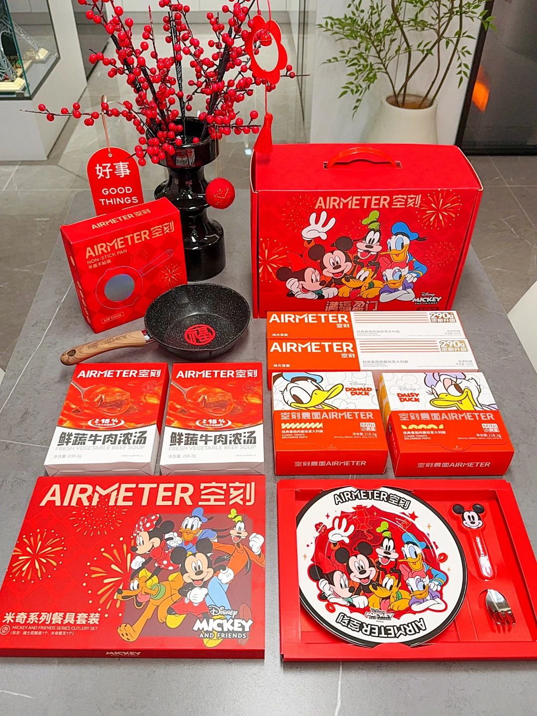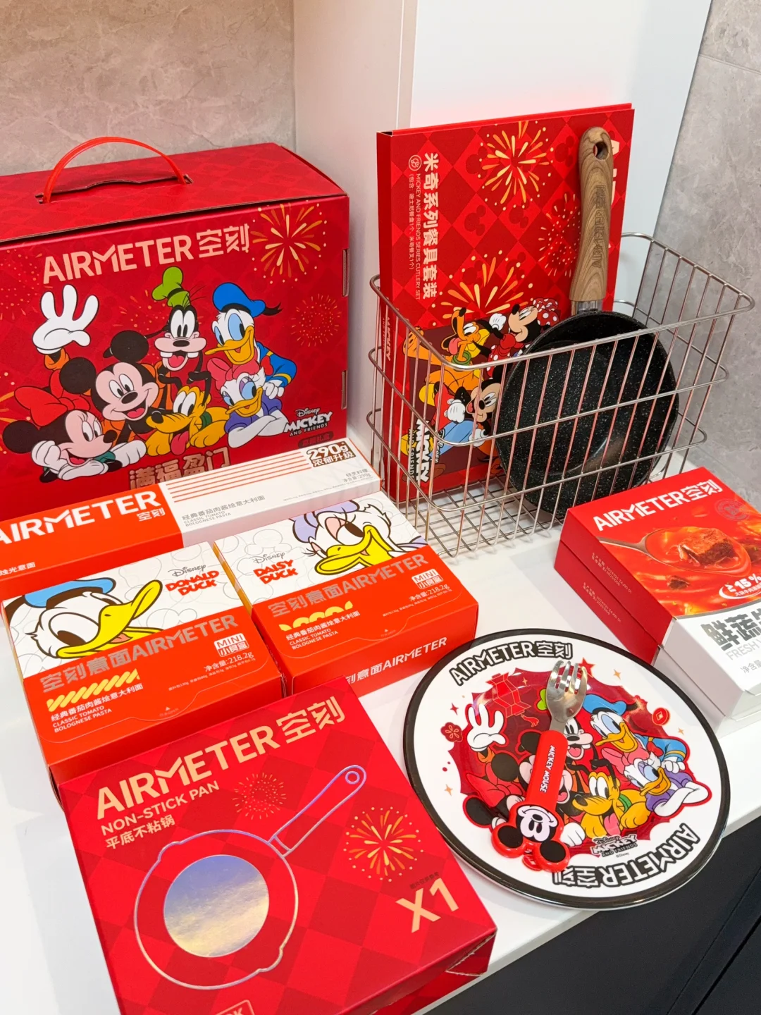 [集美R]今天好久没见的同学带着小朋友来家里做客啦~我提前就准备了福满盈门礼盒,包装就相当有过年气氛。里面有经典的空刻烛光意面、儿童意面、鲜蔬牛肉浓汤,还有可爱的儿童餐具和一个平底锅,每一样都超喜欢。