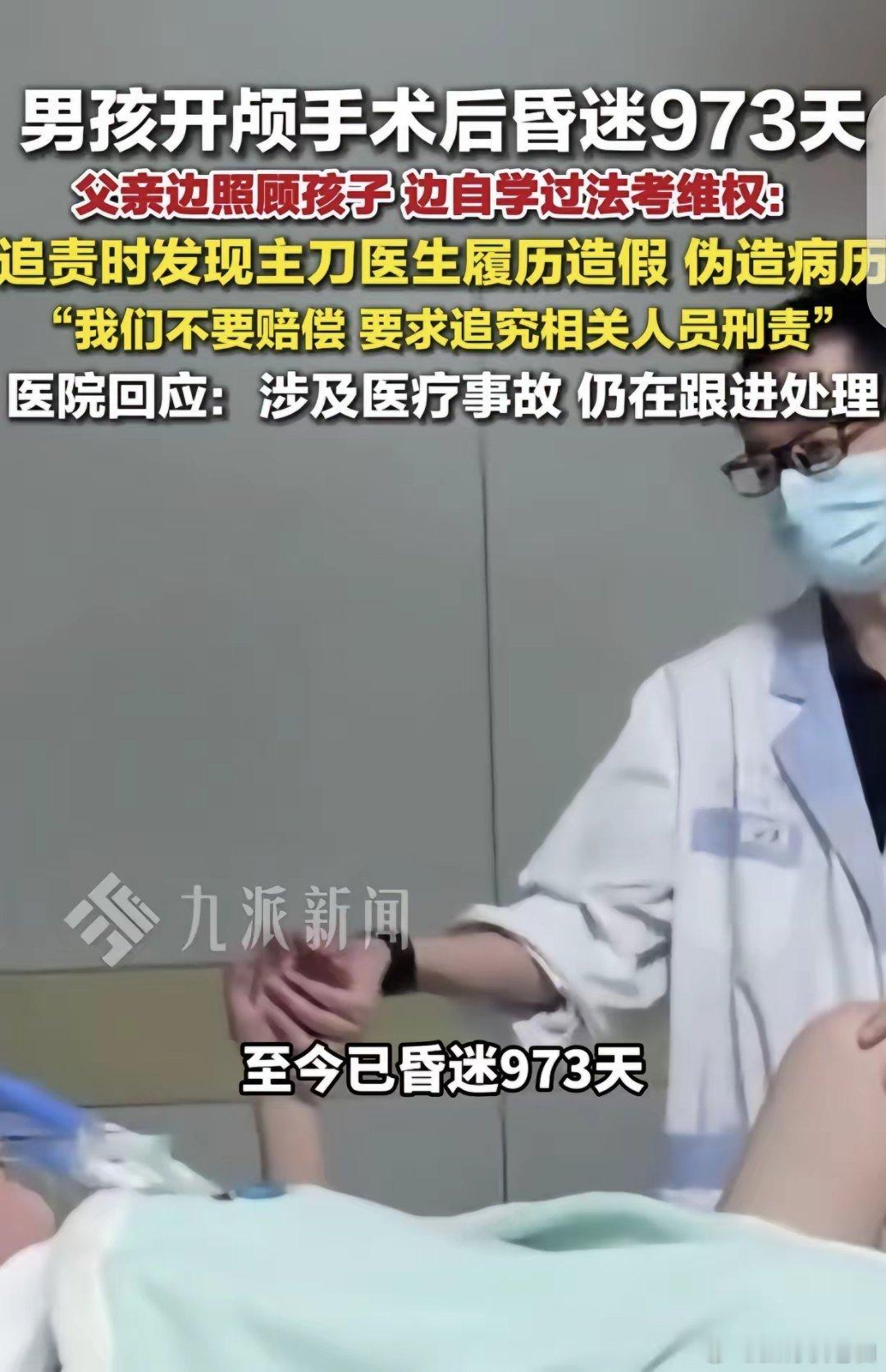 江苏无锡,一16岁男孩开颅手术后,昏迷973天,父亲追责时发现,主刀医生履历造假,还篡改病历,父亲怒了,23年没碰书本的他,一边照顾儿子,一边自学法律知识,终于通过了2025年法律职业资格考试,他要为儿子讨个公道,他不要赔偿,坚决追究主刀医生的刑事责任。龚先生原本有着平凡而幸福的生活,儿子活泼可爱,一家人的日子虽不富裕却也温馨。但一场突如其来的变故,彻底打破了这个家庭的宁静。16岁的儿子因意外受伤,需要进行开颅手术。龚先生惴惴不安的看着儿子被推进手术室,进行开颅手术,他等在手术室外忧心忡忡,每一分每一秒都是煎熬。龚先生盼着儿子能手术顺利,然后尽快康复。可谁能想到,手术后儿子陷入了昏迷,这一昏就是973天。龚先生看着曾经活力四射的儿子如今毫无生气地躺在病床上,他的心都碎了,他无数次在心中祈祷儿子能快点醒来。在儿子昏迷的这段日子里,龚先生一边精心照顾儿子,一边开始追查儿子昏迷的原因。随着调查的深入,他发现了一个令人震惊的事实:主刀医生的履历竟然是造假的,而且医生还篡改了儿子的病历。龚先生愤怒到了极点,他怎么也没想到,自己如此信任的医生,竟然是这样一个毫无职业道德、弄虚作假的人。儿子的昏迷,很可能与医生的这些不当行为有关。龚先生下定决心,一定要为儿子讨个公道。他不要赔偿,只要求追究主刀医生的刑事责任。可他只是一个普通的父亲,对法律知识一窍不通。为了实现这个目标,23年没碰过书本的他,开始了艰难的自学之路。白天,他要守在儿子的病床前,照顾儿子的吃喝拉撒,观察儿子的病情变化。晚上,他才拖着疲惫的身体,打开书本,开始学习法律知识。那些晦涩难懂的法律条文,常常让他看得头晕眼花,但他从未想过放弃。他一遍又一遍地研读,做笔记,遇到不懂的问题,就通过各种渠道去查找资料,请教专业人士。日子一天天过去,龚先生的努力终于有了回报。在2025年的法律职业资格考试中,他成功通过了。拿到成绩的那一刻,他激动得热泪盈眶。这不仅是他努力的证明,更是他为儿子讨回公道的希望。如今,龚先生已经做好了充分的准备,他要拿起法律的武器,与主刀医生对簿公堂。他相信,法律是公正的,一定会给儿子一个公道。他也会一直守在儿子身边,等待儿子醒来的那一天,告诉儿子,爸爸为他做了一切。龚先生的遭遇太让人揪心,儿子开颅术后昏迷近千日,换谁都得崩溃。可他没被打倒,23年没碰书本,为给儿子讨公道硬是自学法律通过法考,这份父爱和坚持太伟大。主刀医生履历造假、篡改病历,严重违背职业道德,损害患者权益,必须严惩。《刑法》第335条,医务人员由于严重不负责任,造成就诊人死亡或者严重损害就诊人身体健康的,处三年以下有期徒刑或者拘役。本案中主刀医生履历造假、篡改病历,若经查实与男孩昏迷存在因果关系,属于严重不负责任,符合该罪构成要件,应依法追究其刑事责任,以维护医疗秩序和患者权益。对此,你怎么看?