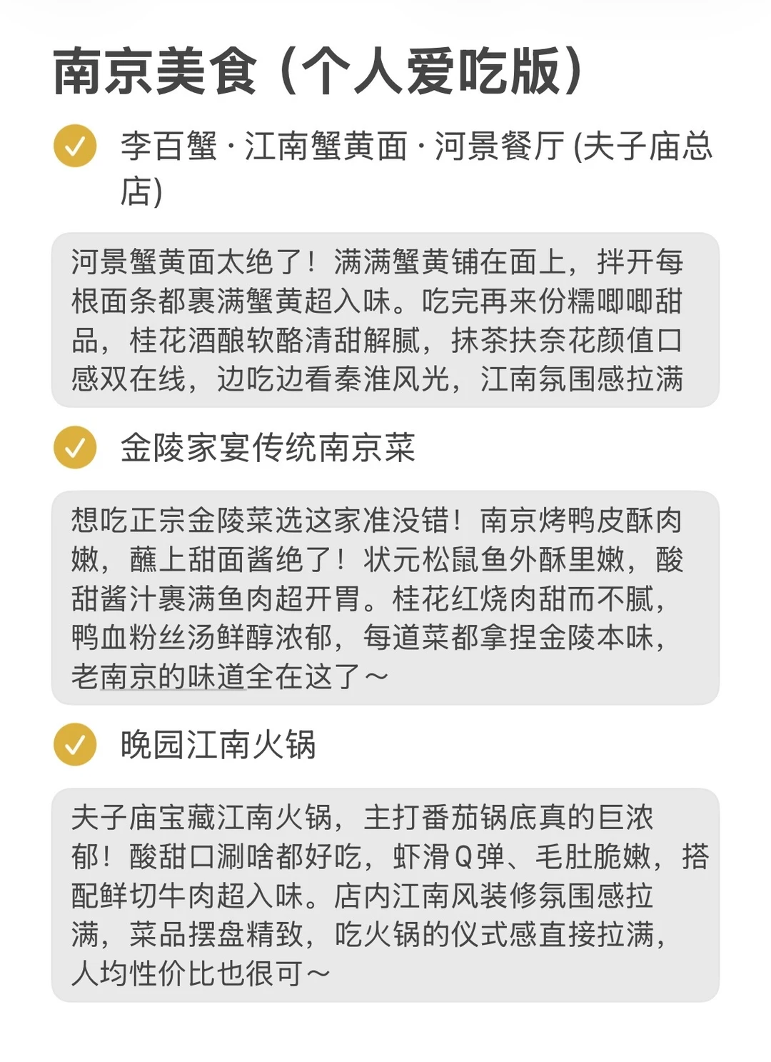 想吃正宗金陵菜选这家准没错!南京烤鸭皮酥肉嫩,蘸上甜面酱绝了!状元松鼠鱼外酥里嫩,酸甜酱汁裹满鱼肉超开胃。
