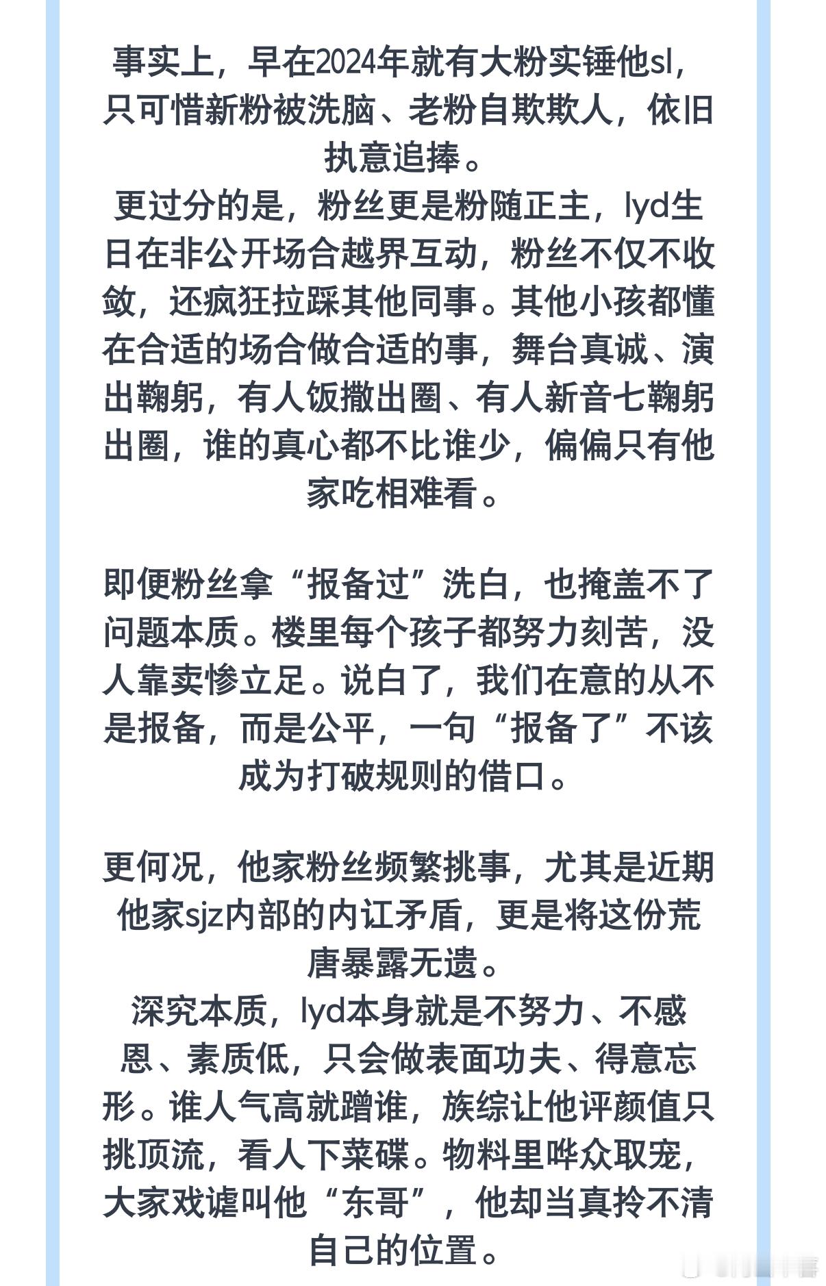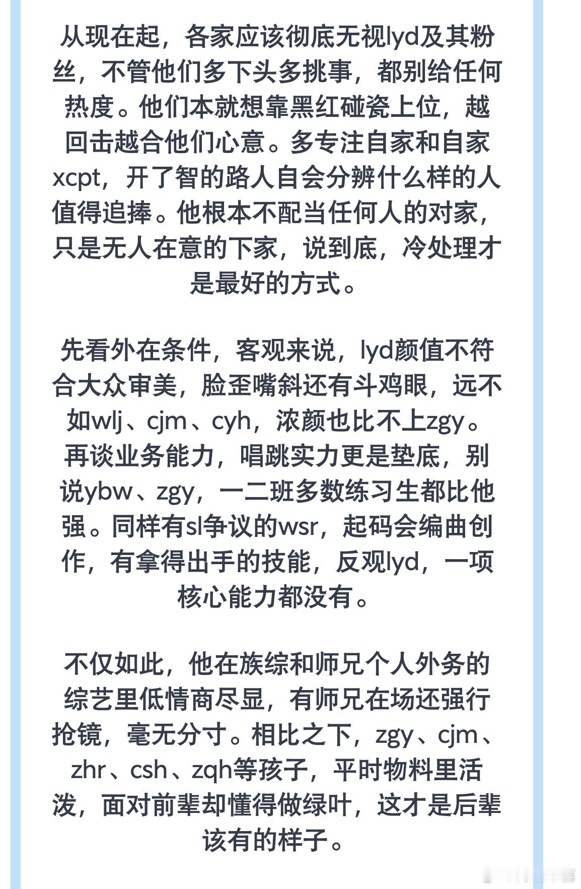 劝各家清醒,别再给lyd眼神,专注自家才是正道。李煜东