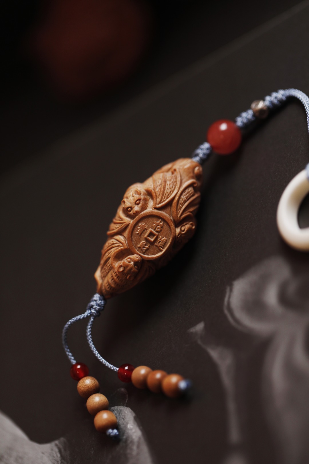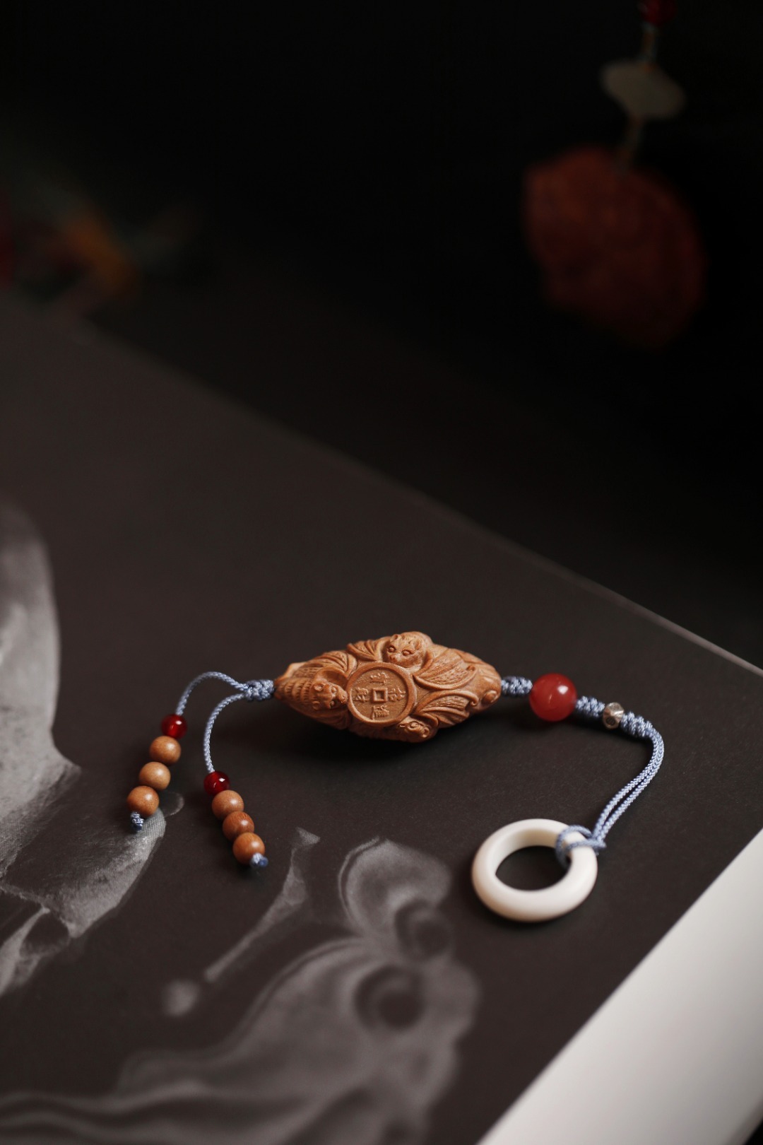 老山檀香【五福临门】挂件 钥匙扣手作精品,香韵醇厚;把五福带回家,祝福满满,幸福