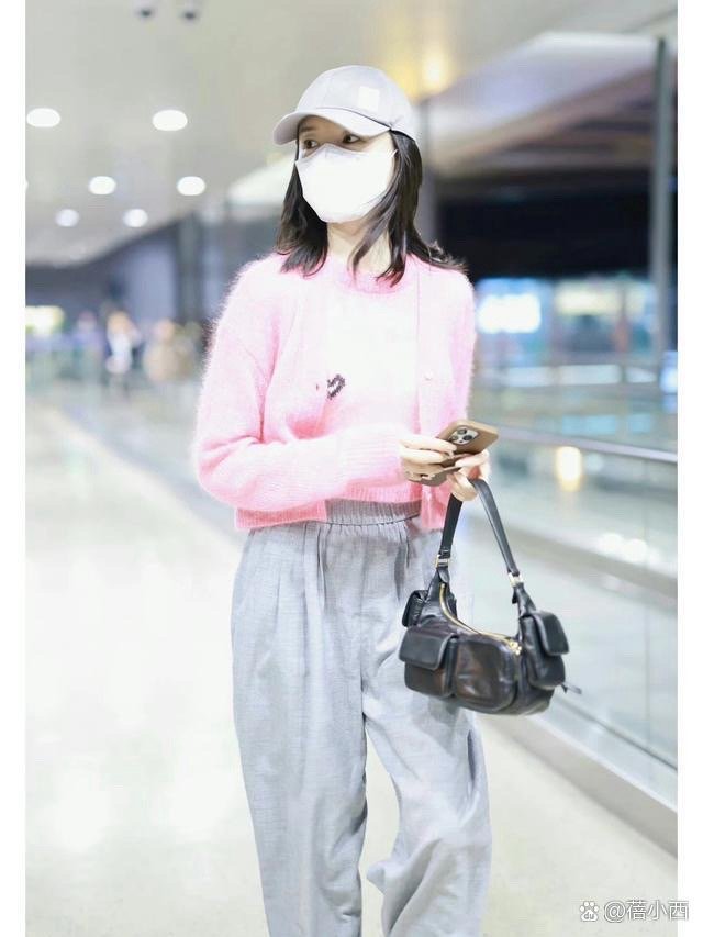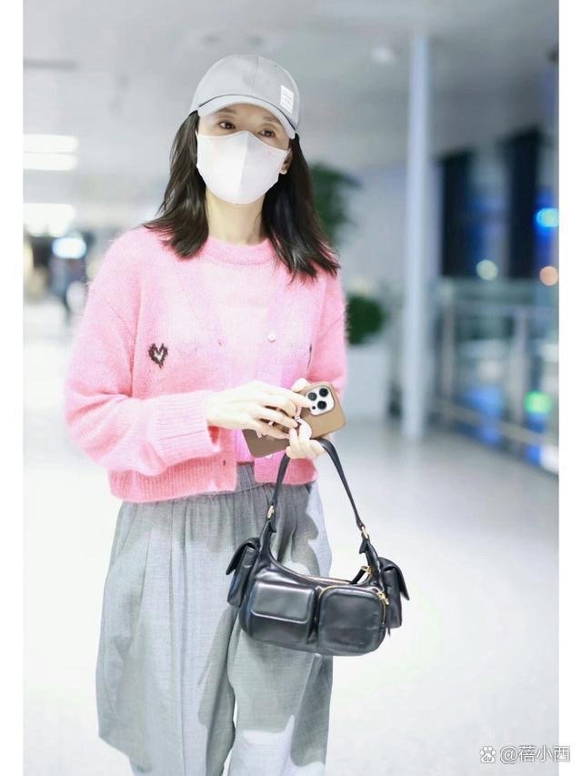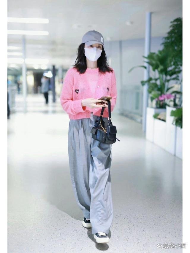 董洁的中年穿搭也太显年轻了!粉色开衫搭配灰色阔腿裤,减龄又高级,时髦感拉满~
