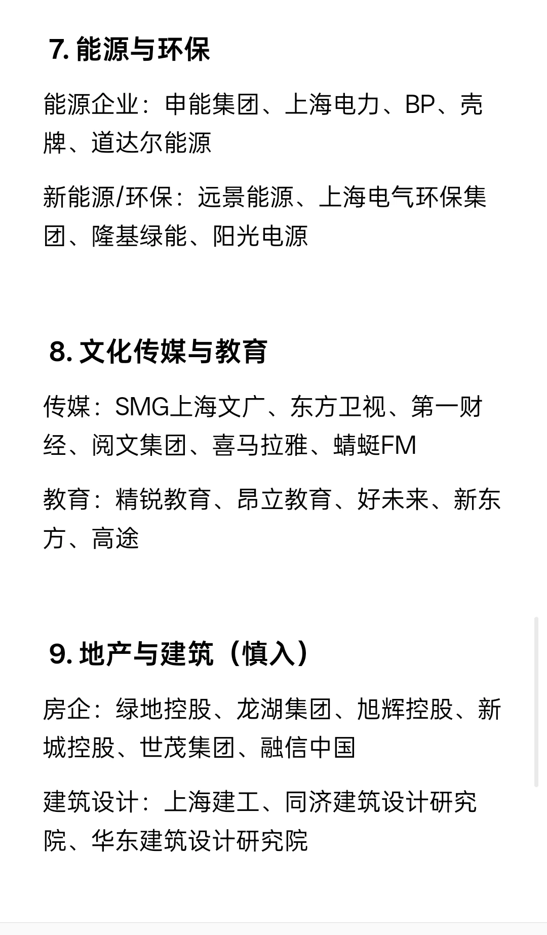 房企:绿地控股、龙湖集团、旭辉控股、新城控股、世茂集团、融信中国
