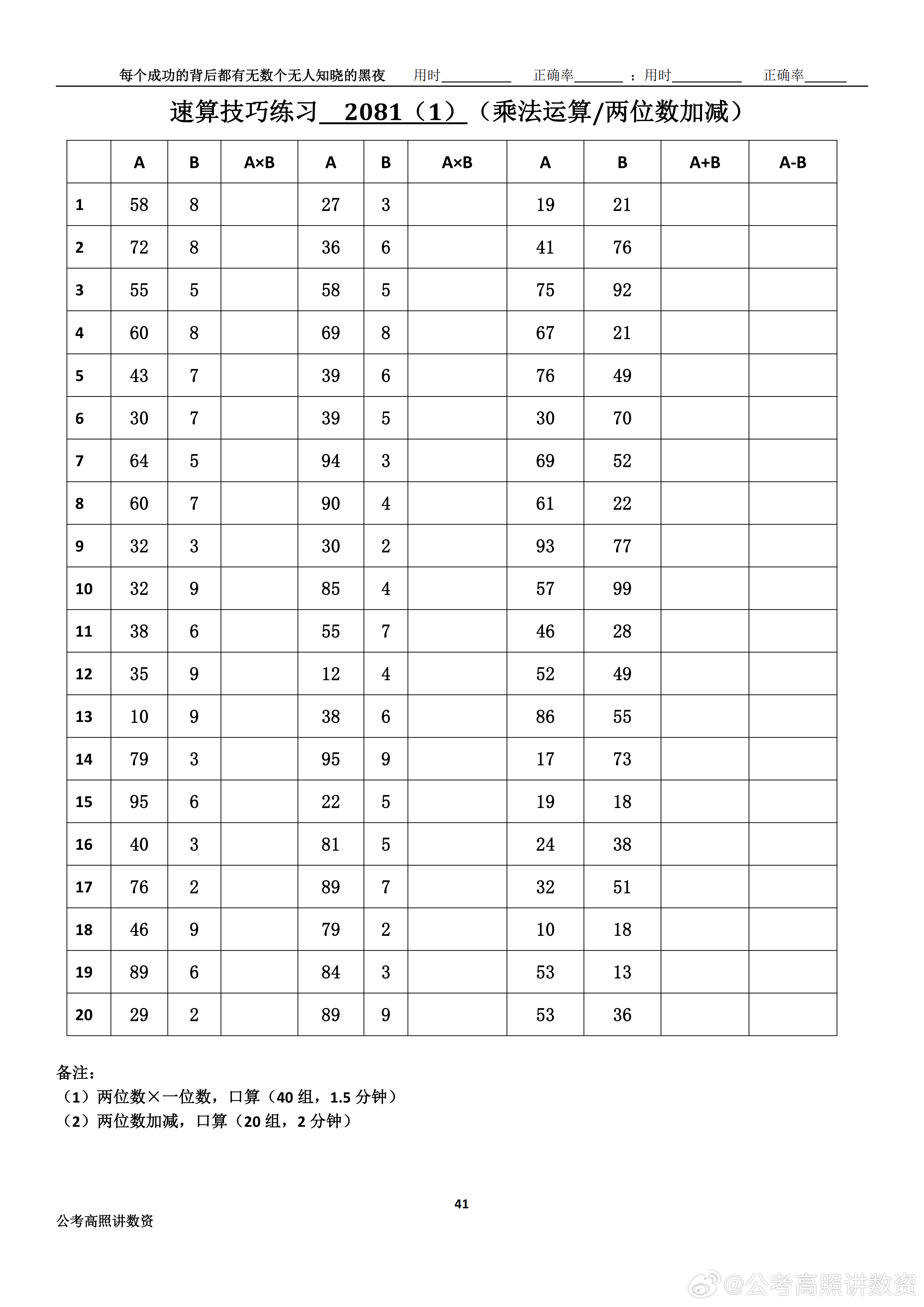 跟着高照练速算决战公考 速算练习2081相信自己,努力学习。速算链接汇总:网页