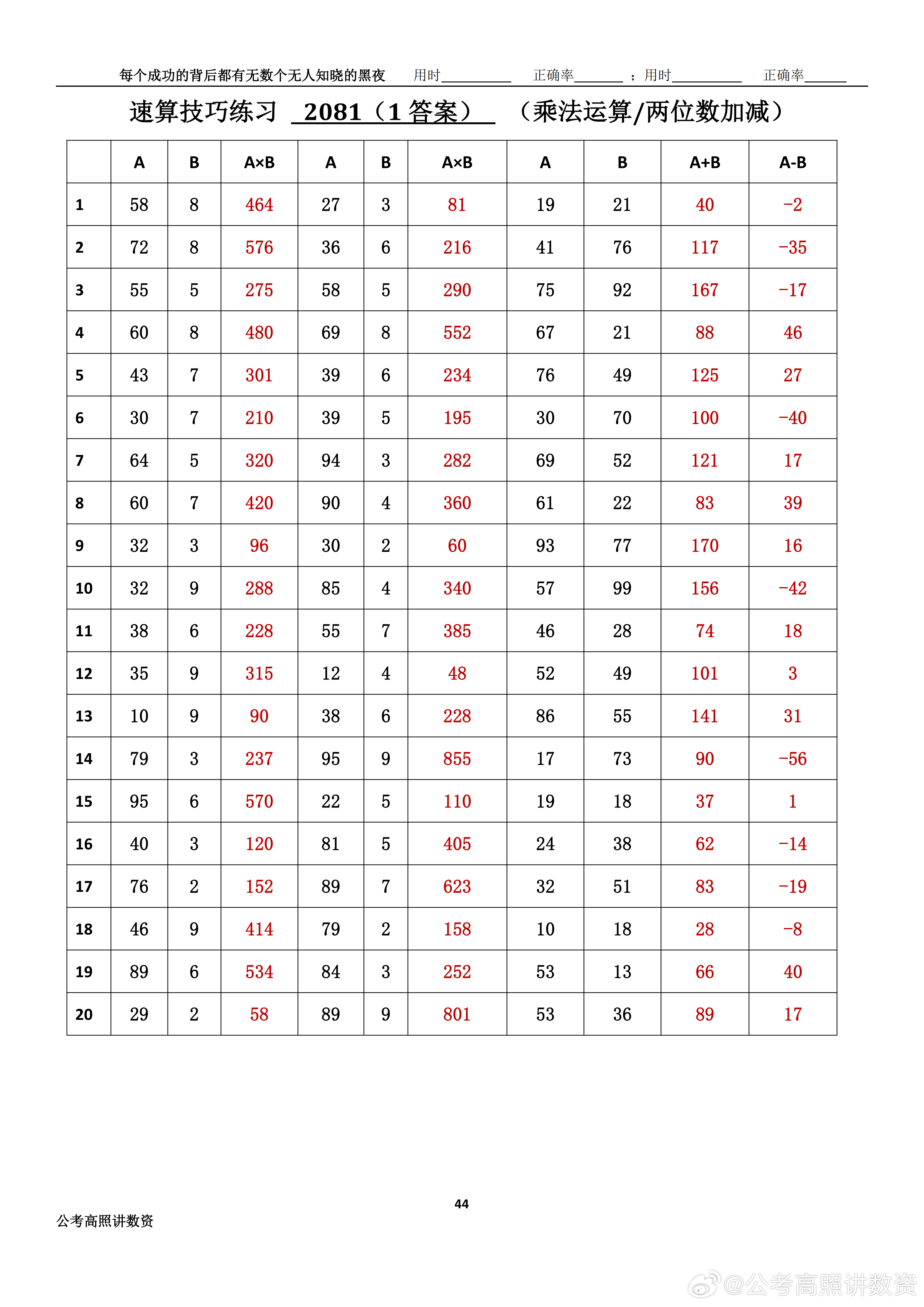 跟着高照练速算决战公考 速算练习2081
