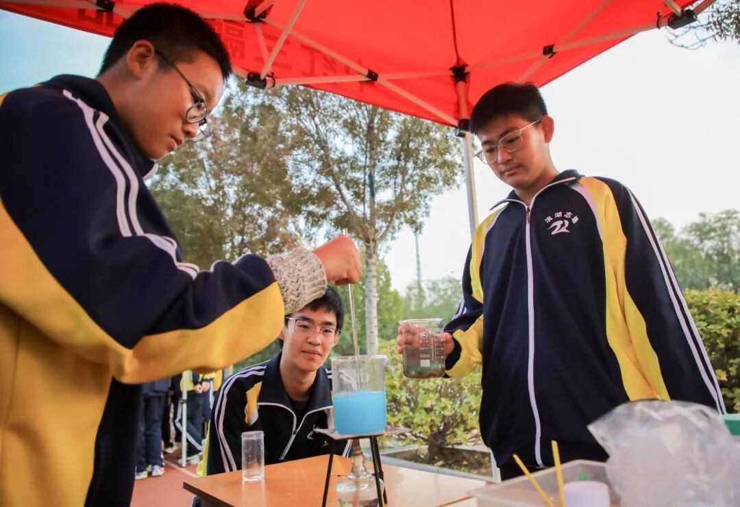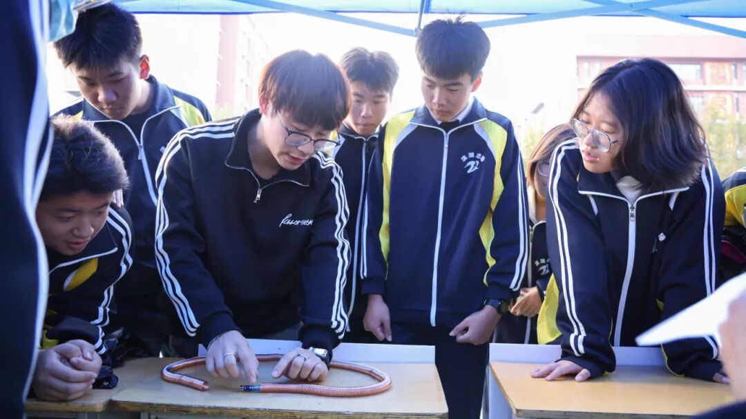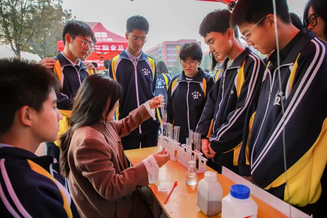展位前,同学们紧紧围成一圈,眼睛紧紧盯着实验过程,现场爆发出阵阵惊叹声。在师生的默契配合下,大家不仅一起做了有趣的实验,更在动手操作的过程中,进一步加深了对科学原理的认识。