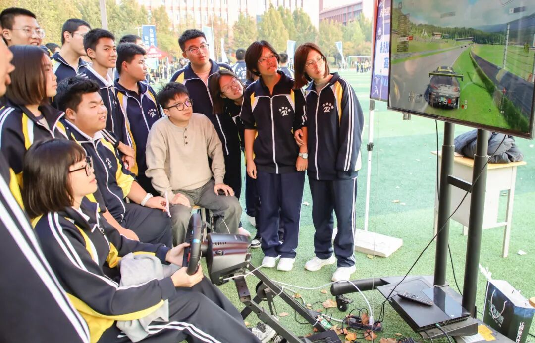 开幕式后,操场化身为巨大的科技乐园。50多个体验展区环绕一周,同学们分批排队,尽情沉浸在这场科技盛宴中。
