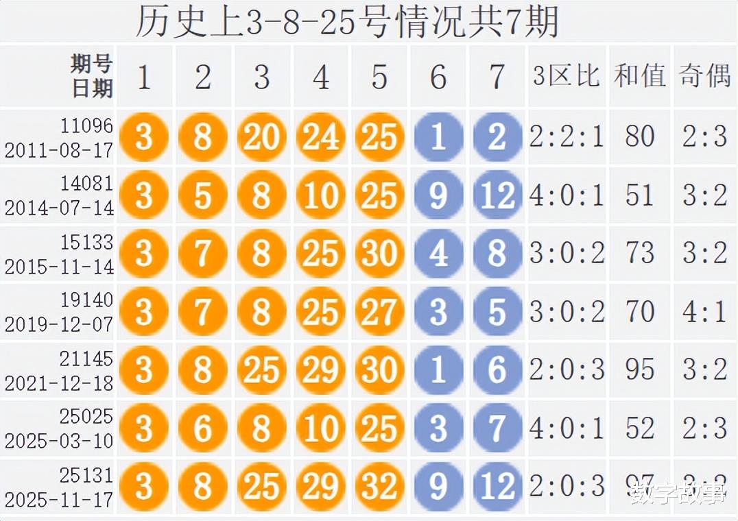 博弈心理,挑战概率: 看近期开奖号码,也可看历史数据统计!【大乐透25132期多角度冷热号】大乐透25132期四维走势图,前后区号统计及冷热号1) 历史同一天:11月19日 (共8期)