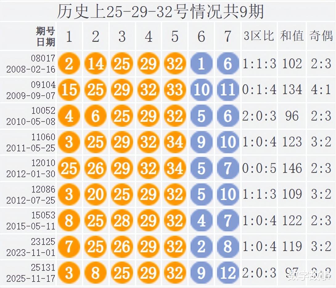 文末有大乐透前区号3-8-25, 25-29-32的历史统计。【体彩大乐透25131期开奖结果及统计】前区号组合历史上有4期四球相同,后区9-12中断18期遗漏;3注一等奖,奖池8.787亿。