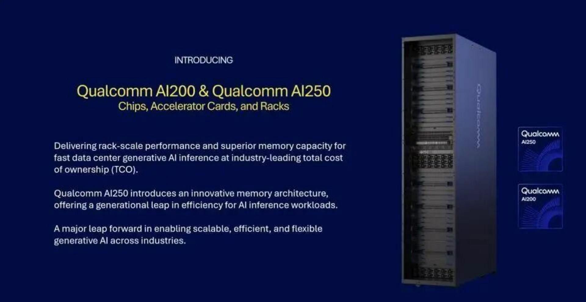 而AI250芯片引入了突破性的“近内存计算”架构,高通声称这种设计能提供超过十倍的有效内存带宽,并显著降低功耗,这对于处理大型语言模型和多模态模型等复杂AI工作负载至关重要,能让芯片在处理海量数据时速度更快、效率更高。