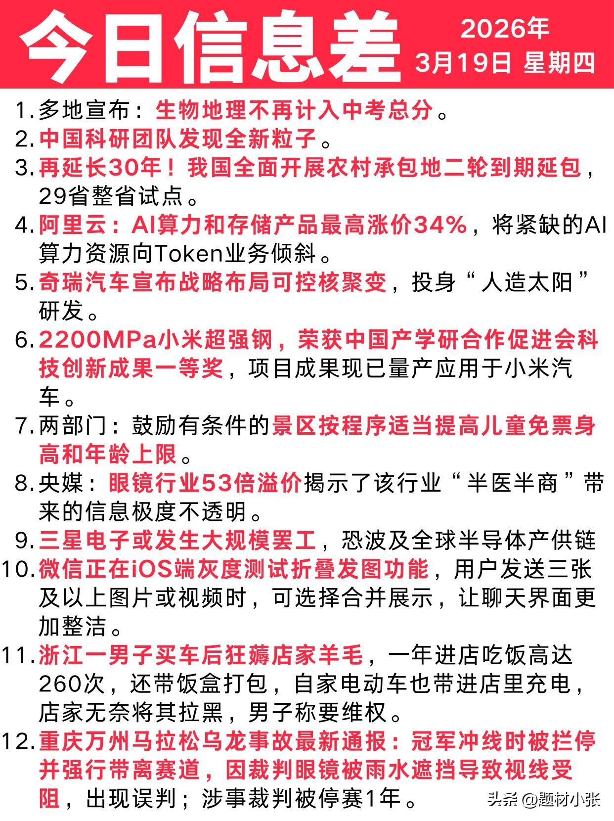 3月19日早报速递,行业热点与民生资讯一网打尽! 商业航天发射密集、华为伙伴大会启幕,算力与低空经济迎来政策东风;中考科目调整、农村承包地延包等民生动态更新,还有科技、消费、职场等领域新鲜事,快速get今日信息差,把握市场与生活先机