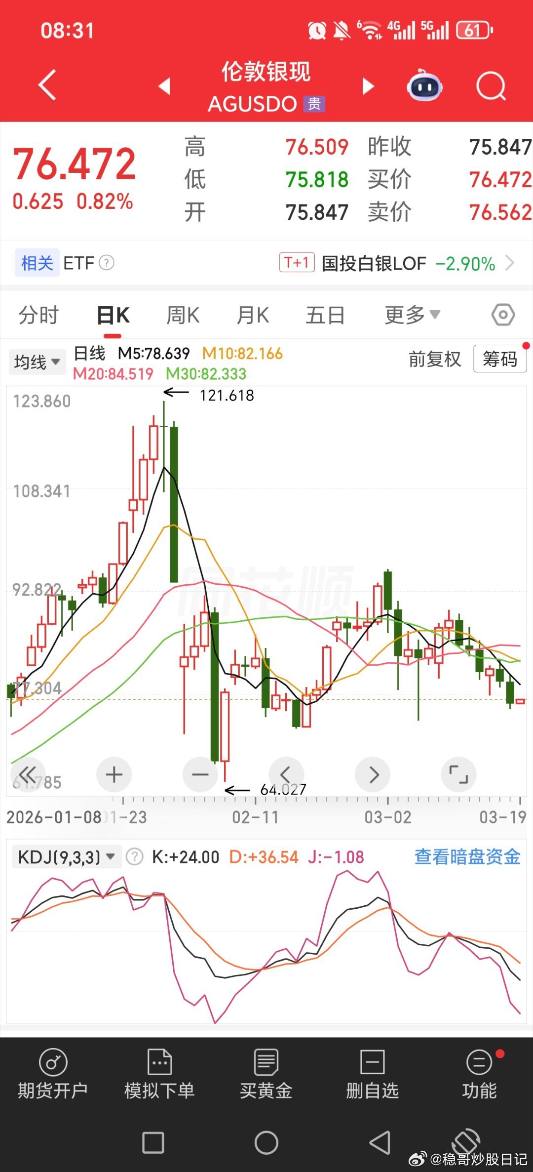 黄金白银这次跌的猛,跌了半个月了。。。。