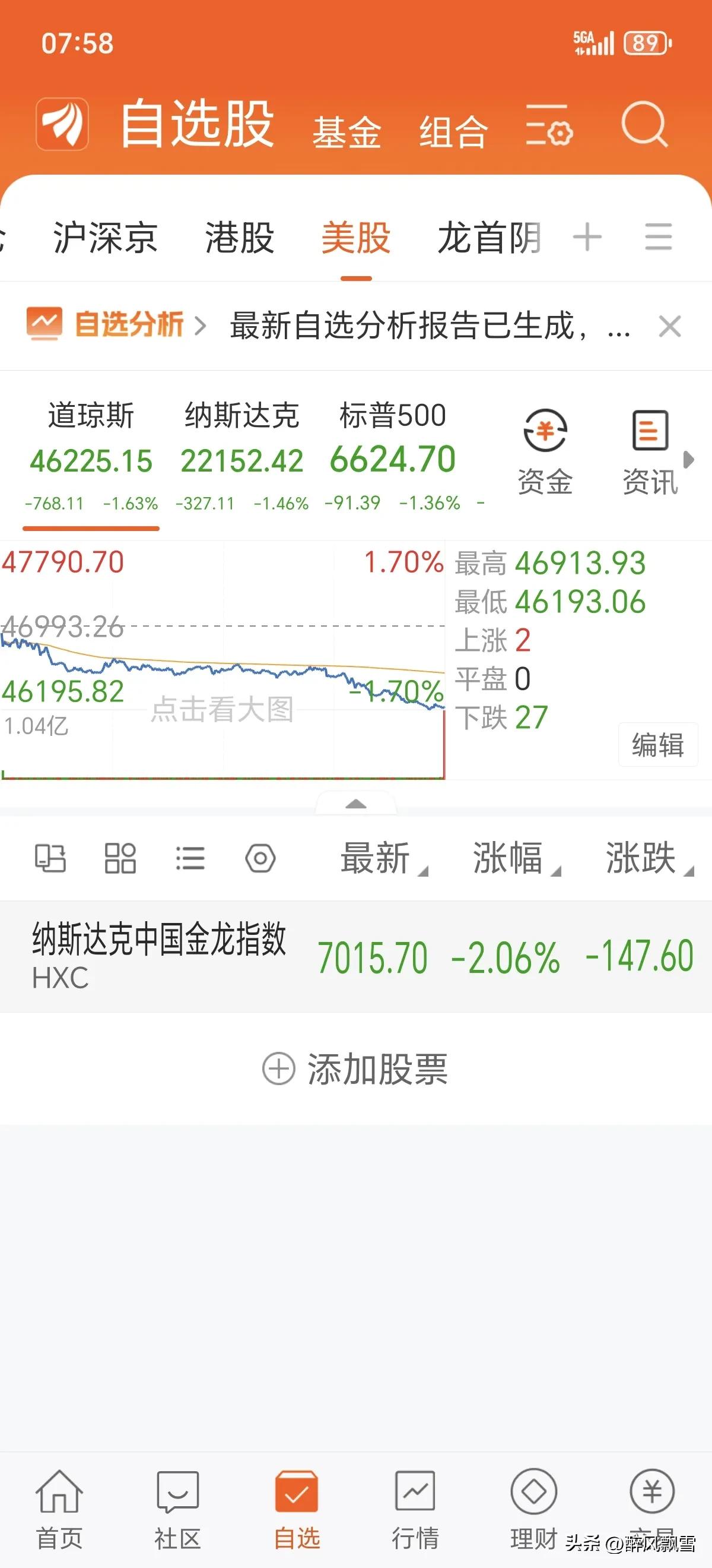 美市场走弱 大A↓ 美股三大指数全线收跌,道指、纳指、标普500分别下跌1.63%、1.46%、1.36%,纳斯达克中国金龙指数跌幅扩大至2.06%。板块分化明显,阿里概念股以2.85%涨幅领涨,炼油、页岩油等能源板块表现强势,MR混合现实、物流等板块小幅走弱。
