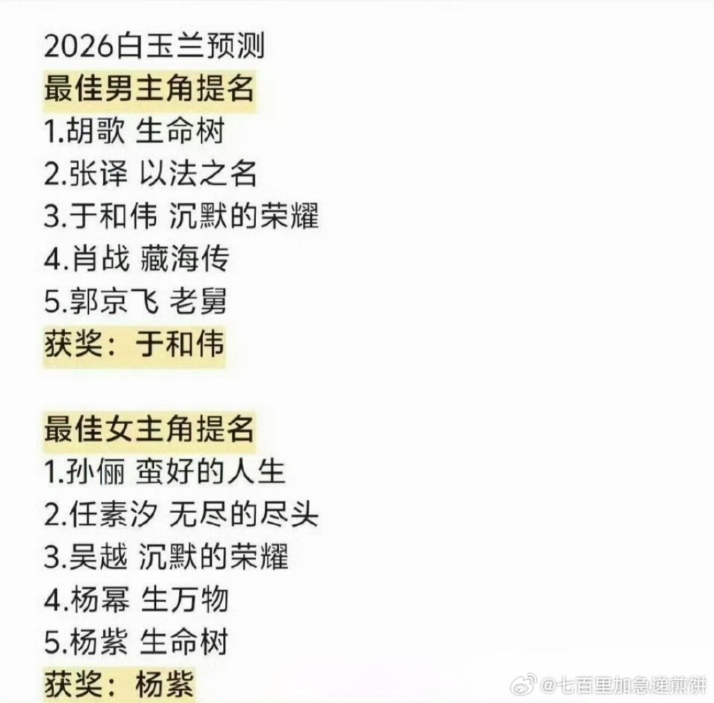 瓣组对白玉兰获奖名单的新一轮预测,你咋看