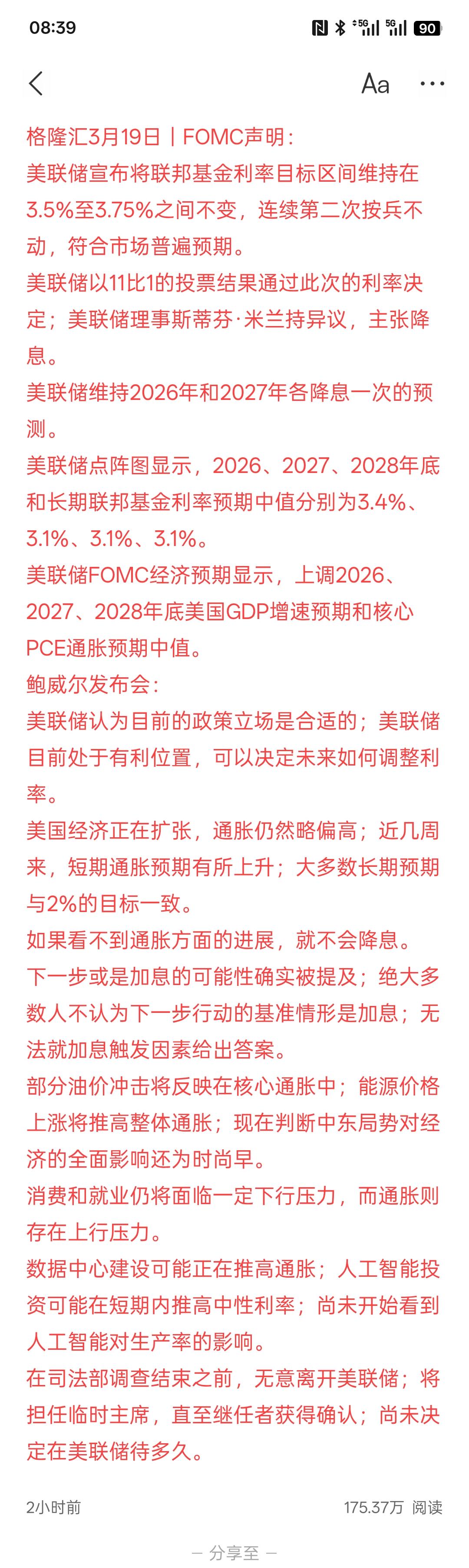 美联储不会降息,美股三大指数昨晚应声大跌,美联储FOMC声明及鲍威尔发布会要点:如期维持利率不变,预计2026年和2027年各降息一次,根据美联储最新的消息,2026年只降息一次,2027年降息一次,那对于特朗普政府,他是有压力的,我一直要求美联储加快降息的步伐,但美联储依然没有降息,而特朗普一直想让美联储主席鲍尔下台,最终没有如愿以偿!现在,美国与伊朗陷入了战争,美联储降息肯定会非常谨慎,因为油价的上涨可能会推高美国的通货膨胀! 所以,根据目前不确定性,所以美股很难再向上看涨,因为有资金开始逃离美国,尤其是美国大财团所掌控的财富,有人开始大规模的赎回!同样在沙特阿拉伯国家,因为伊朗与美国的冲突导致大量的财富也开始逃离!