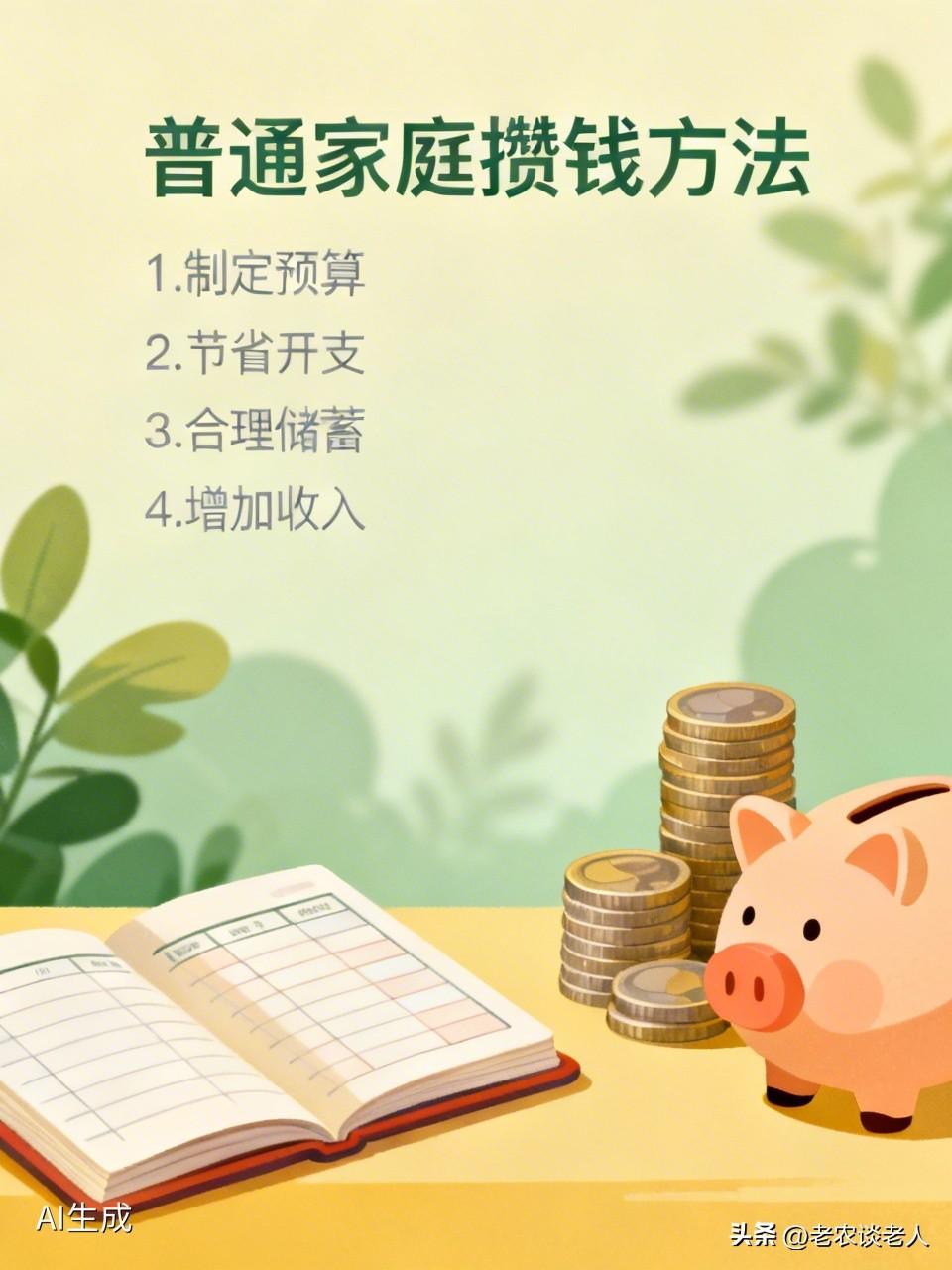 普通家庭攒钱有哪些好方法? 普通家庭赚钱确实是非常有学问的一个问题,既要有风险危机感,就有赚钱的动力,又要有赚钱的正确认知,懂得怎样赚钱和攒钱,还要有过苦日子的毅力和能力,才能攒下钱来。 一,赚钱时要有风险危机感,就有攒钱的动力。当你赚到钱的时候,千万要记住,赚钱非常不容易,赚不到钱的时候该怎么办?饥饿的时候该怎么办?家里有人生大病的时候该怎么办?家里出现了特殊灾难情况的时候该怎么办?…… 只要想通了这些问题,赚钱以后能够处理好风险和危机,就必须手上要有足够的钱。这个时候就有赚钱和攒钱的动力。否则赚一个钱,就要花掉一个钱,到时候哪有什么攒钱存钱呢? 二,赚钱时要有正确的认知,才能懂得怎样去赚钱和攒钱。在赚钱的时候要知道我为什么要去赚钱?为什么要去存钱?为什么要把生活的结余的零花钱都积攒起来?这些钱又有什么用处? 只要懂得赚钱和攒钱的道理,才能更好的去赚钱,更好的去存钱和攒钱。若是对赚钱和攒钱的目的不明确,或者目的不正确,那么所赚到的钱和攒到的钱,说花就花掉了,说用就全部用掉了,对自己处理日常生活和人生大事的时候没有钱,还是缺少钱。这样的赚钱和攒钱,又有什么意义?赚到的钱一定要用在刀刃上才对。 三,赚钱时要有过苦日子的毅力和能力,才能攒得下钱。当自己赚到钱的时候,就想着要怎样的去攒钱,去存钱。这个时候,把留足基本生活和赚钱成本的钱以外,就要把所有剩下的钱存起来,攒起来,就必须要有毅力,要有计划,要有目的,要有过苦日子的能力,否则是攒不下钱,存不下钱的。 以上是本人观点,如有不妥,请大家在留言区处留下你宝贵的意见,并积极参与评论,特邀请大家关注怎样攒钱的方法问题。