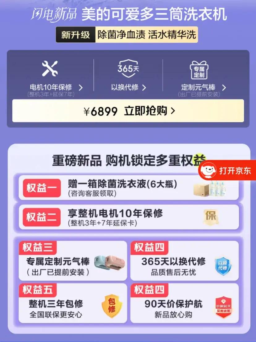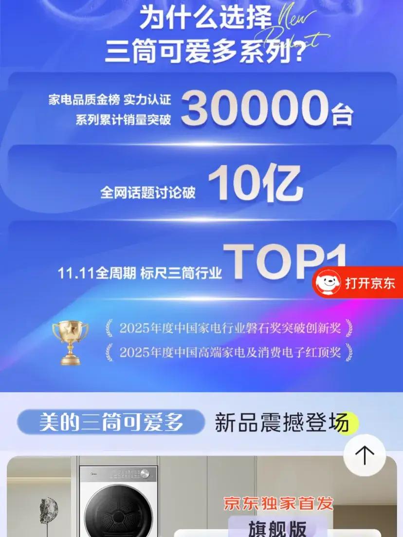 信不信由你,明年预计有4件大事要发生: 1 . 退休金不会再出现有人拿10000元,有的人只拿1000元,差距会越来越小 2、新能源车市场占有率会有所提高 3、人工智能在各个领域会有大突破 4、买东西的人会越来越理性,人们更注重产品的品质、性价比、实用性能 生活越来越安稳、科技越来越发达、消费越来越理性,大家选家电,也从“看牌子、看噱头”转向看健康、看实用、看真性价比。 2025年8月上市的美的可爱多三筒洗衣机,正是踩中了这波趋势,一上市就成为爆款,上市至今销量持续领跑三筒洗衣机赛道,靠的不是营销,而是真正解决家庭日常痛点。 它最打动人心的,是把健康做到了极致。三筒独立分区设计,10kg主筒洗外衣大件,两个0.5kg小筒分别洗内衣、袜子,独立水路、独立烘干,从源头杜绝交叉感染,守护女生、宝妈、老人与孩子的贴身健康。 搭配元气棒专效去渍除菌、银离子与紫外线多重防护,达到医护级洁净标准,洗得更放心、穿得更安心。 在智能与便捷上,美的可爱多紧跟AI家电趋势,支持智能投放、WiFi远程操控,三筒可同洗同烘,一次搞定全家衣物,省时省力。 低温烘干不伤衣,回南天、梅雨季也能即洗即穿,告别潮湿与异味,让智能科技真正服务于日常生活。 更难得的是,它完美契合理性消费趋势。850mm标准高度+纤薄机身,不用改柜、不用改水电,新家老房都能轻松嵌入。 一级能效静音省电,价格亲民、配置拉满,在健康、烘干、安装、性价比上做到全面平衡。 明年的生活,更公平、更智能、更务实。选洗衣机,就选美的可爱多,健康、实用、高性价比,给全家稳稳的幸福与安心。