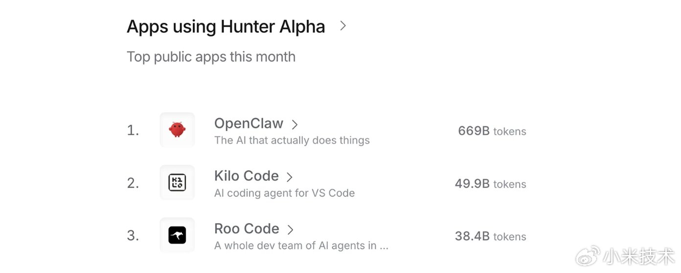 早期测试版Hunter Alpha上线OpenRouter便登顶日榜,调用量破1T tokens,社区口碑直接封神。