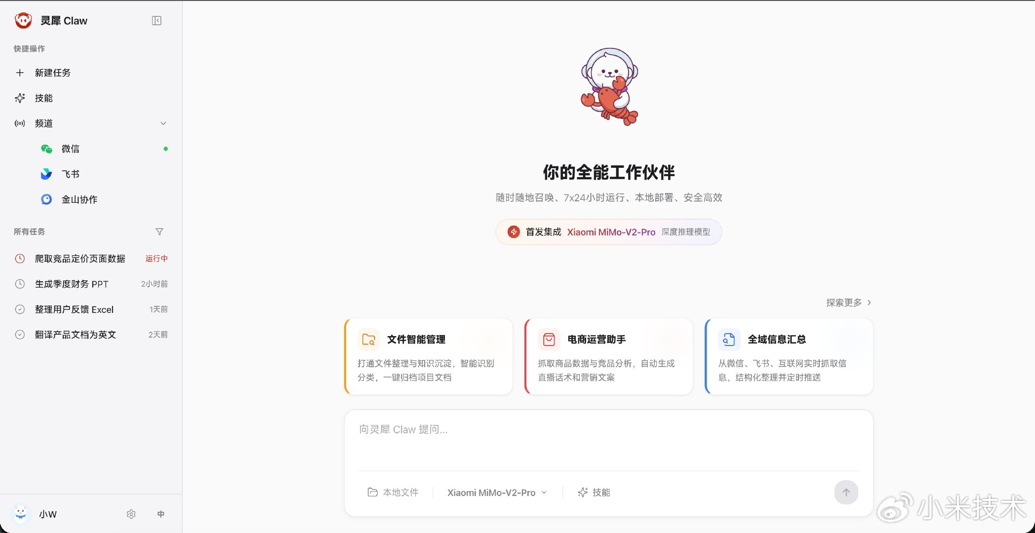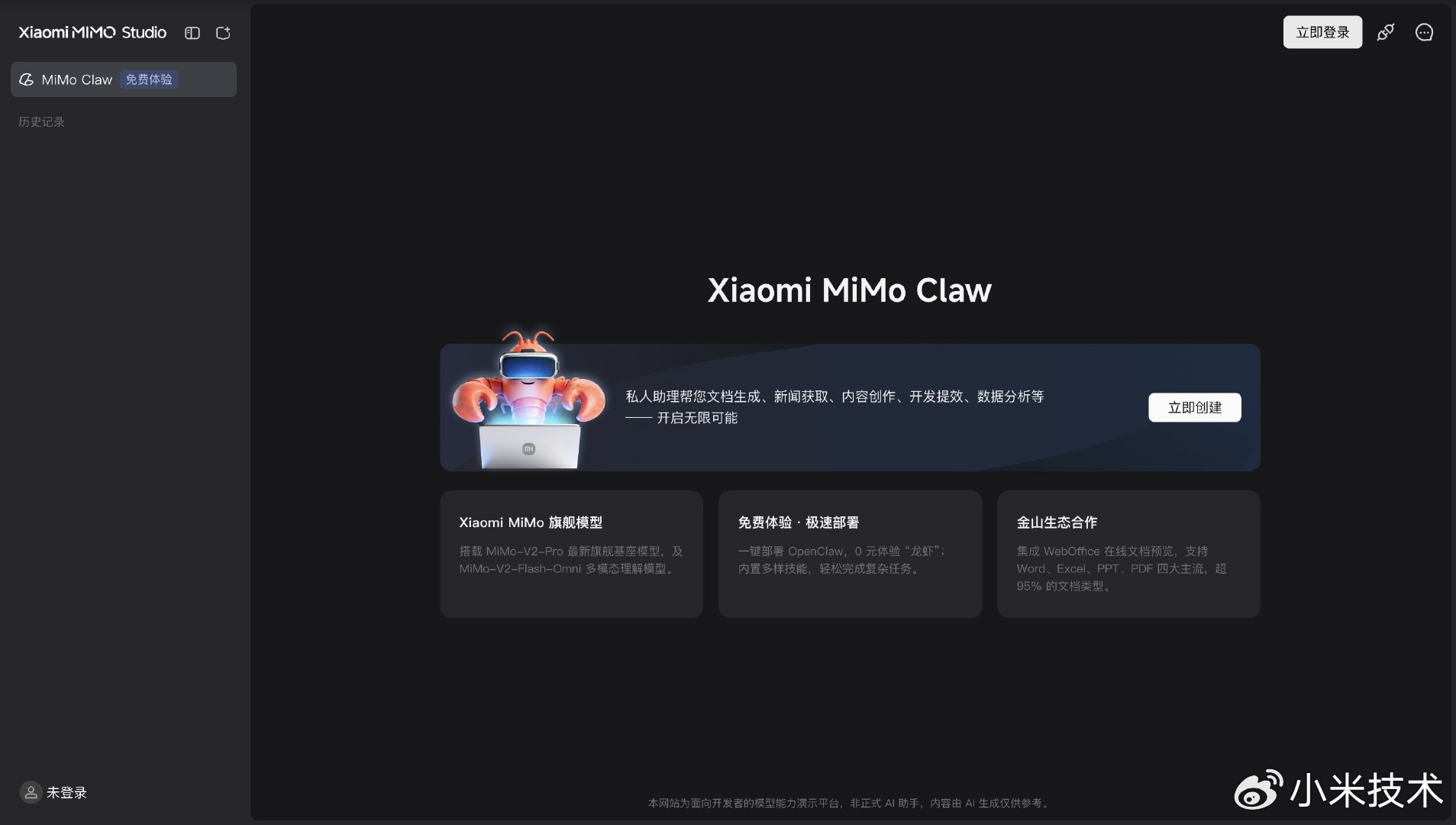 MiMo-V2-Pro已全面落地Xiaomi miclaw、MiMo Studio、金山办公、小米浏览器,联动五大开发框架限时免费体验一周;打通WPS全生态,覆盖主流文档格式;手机端miclaw实现系统级执行,真正让AI从“聊天工具”变成“生产力大脑”。