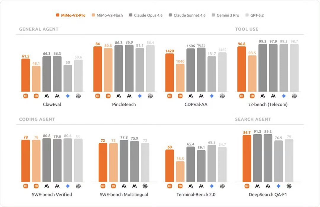 小米MiMo-V2-Pro:从匿名黑马到全球前三榜单中排名第三的Hunter Alpha,正是小米刚刚认领的万亿参数大模型MiMo-V2-Pro。- 自上线以来,它连续拿下OpenRouter多个日榜第一,在Agent场景下表现尤为强劲。- 在专业评测中,MiMo-V2-Pro在工具使用、代码生成、搜索问答等多个维度,都能与Gemini、Claude等国际顶尖模型正面抗衡,部分场景甚至实现了超越。- 作为专为高强度Agent工作场景打造的AI,它的快速迭代和优异表现,让全球看到了中国大模型的“小米速度”。中国大模型调用量包揽全球前四