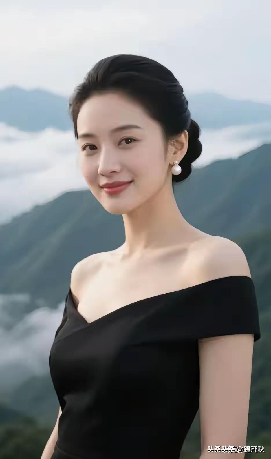 东方美女 东方佳丽韵悠长, 黑袂露肩雅态彰。 典雅风姿添魅力, 韶华灼灼神飞扬。