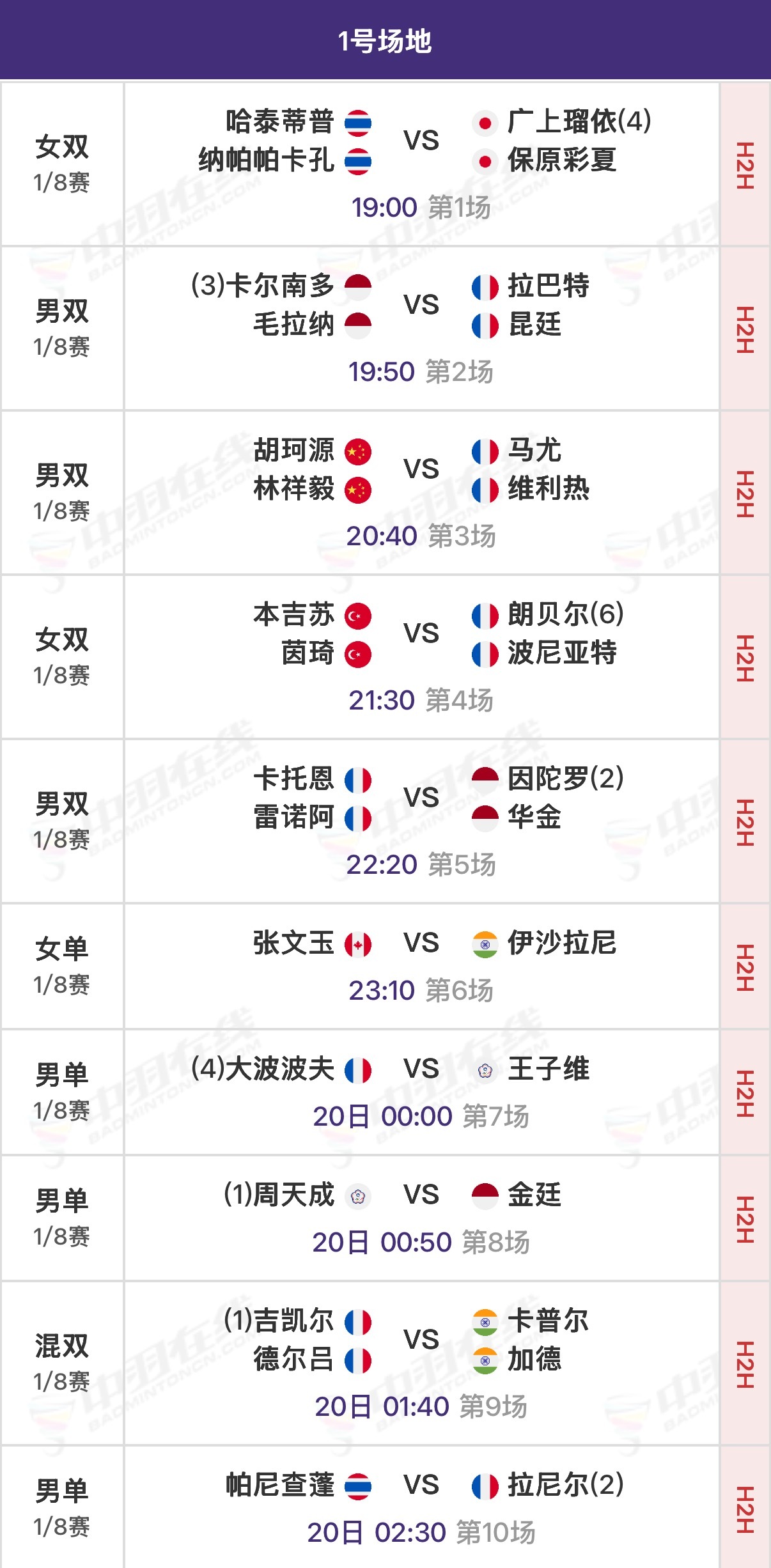 2026年奥尔良羽毛球大师赛 1/8决赛北京时间19:00开始,可在羽协公众号/视频号、优酷观赛实时比分:网页链接官方赛程:网页链接