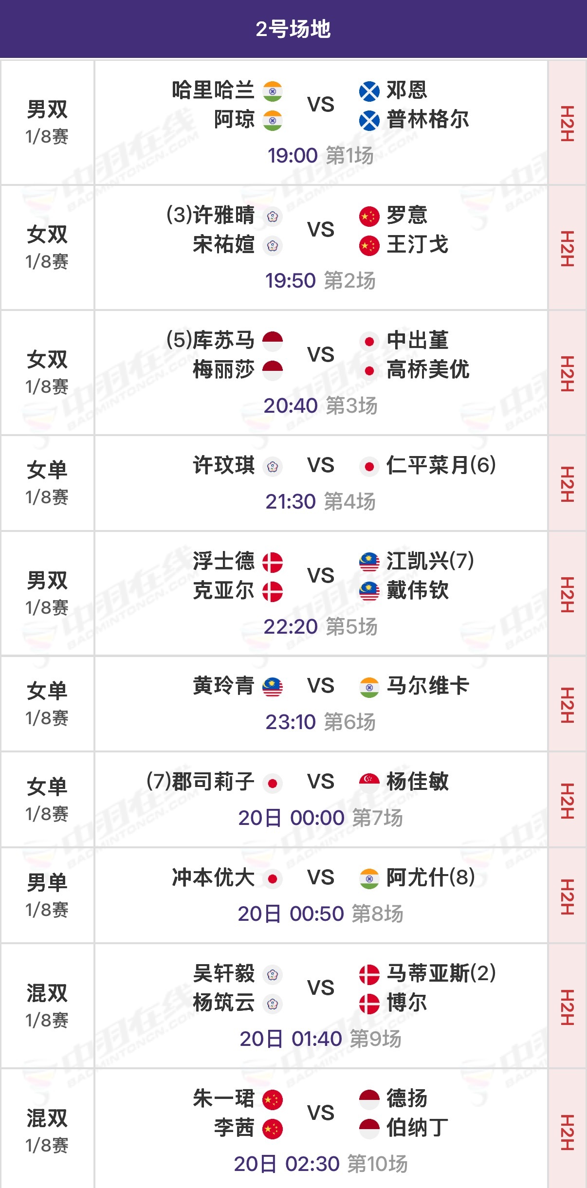 【二号场地】②🇨🇳罗意/王汀戈vs许雅晴/宋祐媗ᴛᴘᴇ⑩🇨🇳朱一珺/李茜vs德扬/伯纳丁🇮🇩