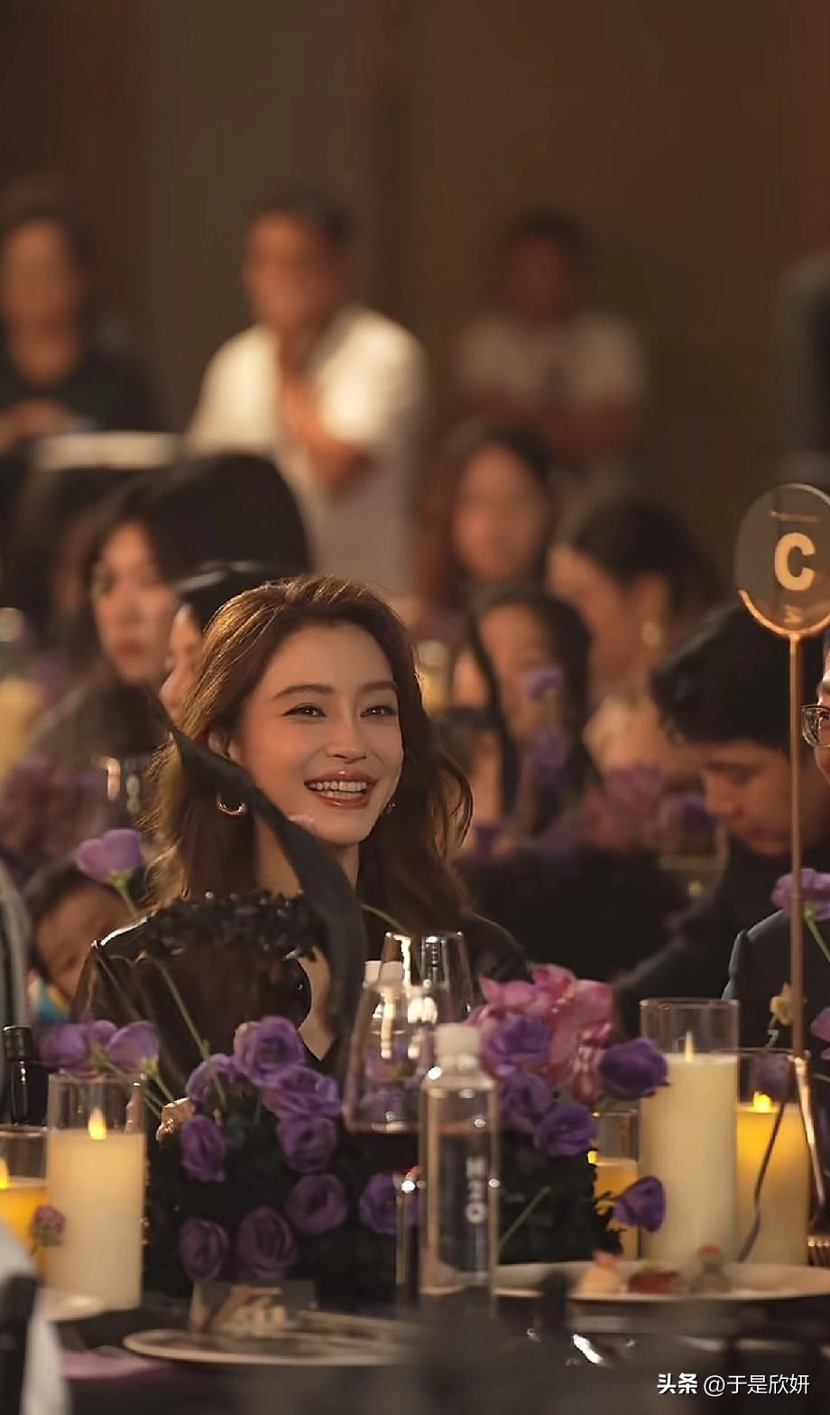 Angelababy最新晚宴生图流出,直接美上热搜! 原相机镜头下,她一头慵懒大波浪卷发,搭配黑色亮面礼服,笑起来眼尾带光,连法令纹都透着精致感。紫色花艺和烛光衬得她皮肤白到发光,怼脸拍都找不到一丝瑕疵,完全看不出已经35岁。 有网友感叹:“这状态比刚出道时还绝,内娱颜值天花板实锤了!” 也有人翻出她早年嫩模时期的照片,感慨“从《跑男》到现在,她的脸就没崩过”。 不过也有争议:“被封杀后还能参加这种高端晚宴,背后资源到底有多硬?”“光靠脸能吃一辈子吗?”