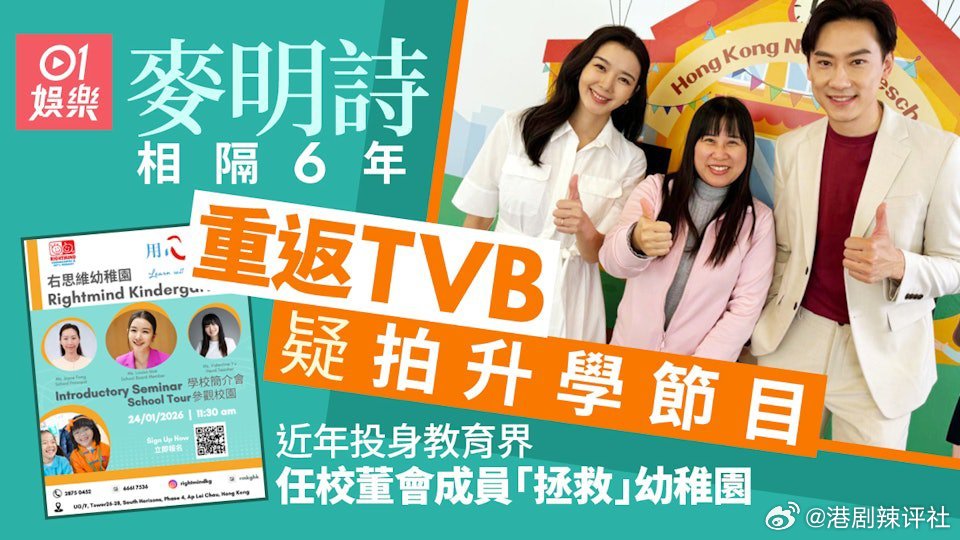 麥明詩在無綫電視對上一部作品已是2020年播出的節電視劇《殺手》,她在劇中飾演失明少女閻素之。相隔六年,麥明詩重返TVB,據小紅書流傳的帖文顯示,麥明詩當日身穿斯文裝扮,狀態大勇,同行更有星級主持兼教育界名人Patrick Sir(林溥來)。兩人在幼稚園內進行拍攝工作,面對鏡頭駕輕就熟。由於Patrick Sir本身具備豐富的教育背景,加上麥明詩深入民心的「學霸」形象,不少網民推測今次TVB的新節目很大機會與教育、升學或幼兒發展息息相關。